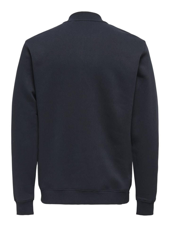 Мужская куртка Only & Sons "ONSCERES REG ZIP BOMBER" с воротником-стойкой, черная, однотонная. Куртка Only & Sons "ONSCERES REG ZIP BOMBER" прямого кроя сочетает в себе классическую изысканность и спортивный стиль. На работе или в свободное время мужчины всегда хотят быть стильно одетыми, не тратя много времени на планирование. Куртка гарантирует им идеальный образ в любое время и предлагает возможности для самых разных комбинаций.