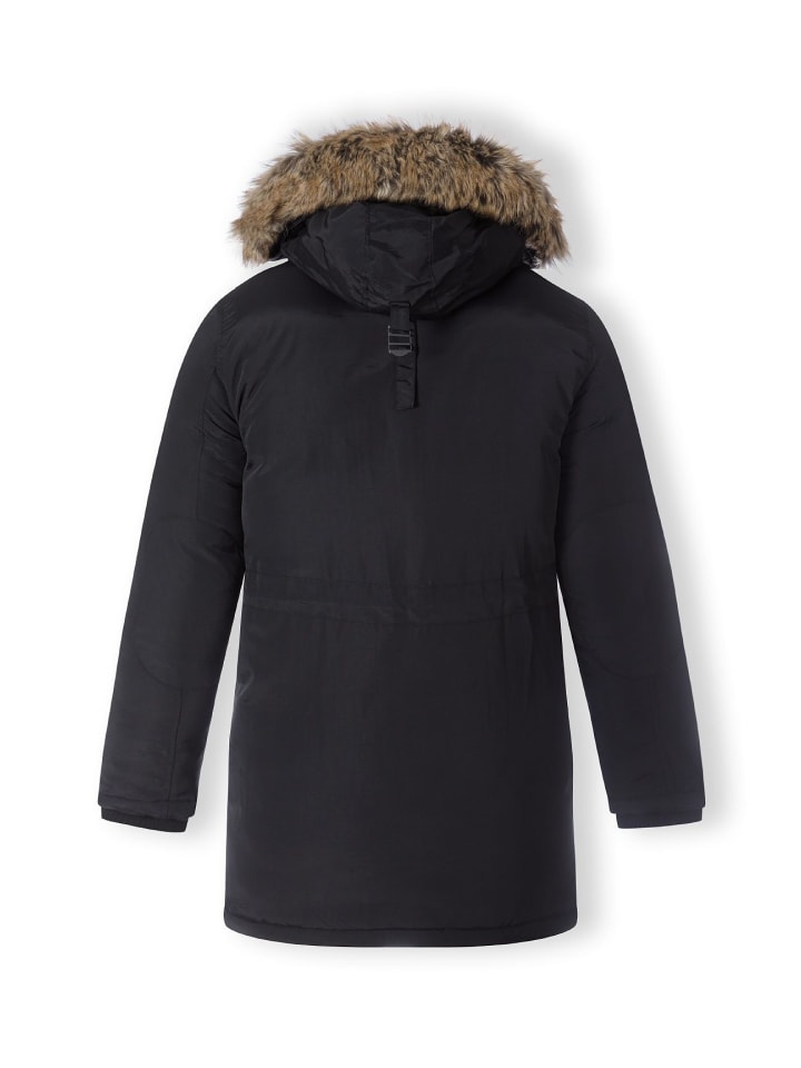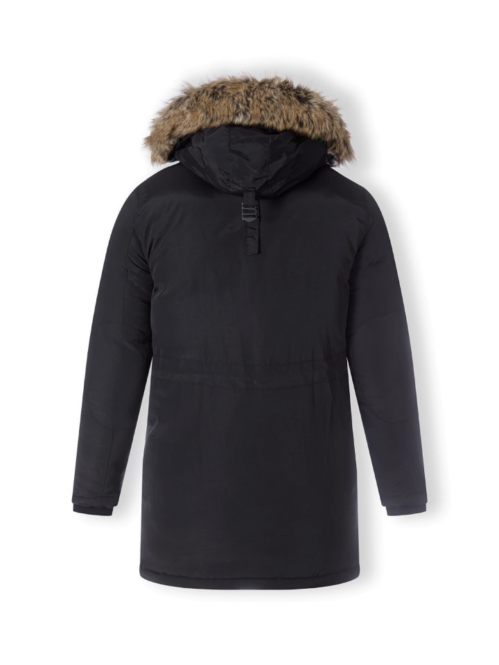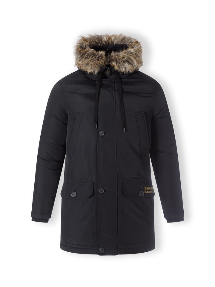 Парка с регулируемой талией и дополнительной застежкой на кнопках для ценителей комфорта. Капюшон отделан контрастной отделкой из искусственного меха. Куртка имеет четыре кармана, два из которых застегиваются на кнопки. Модная нашивка добавляет стильный штрих.