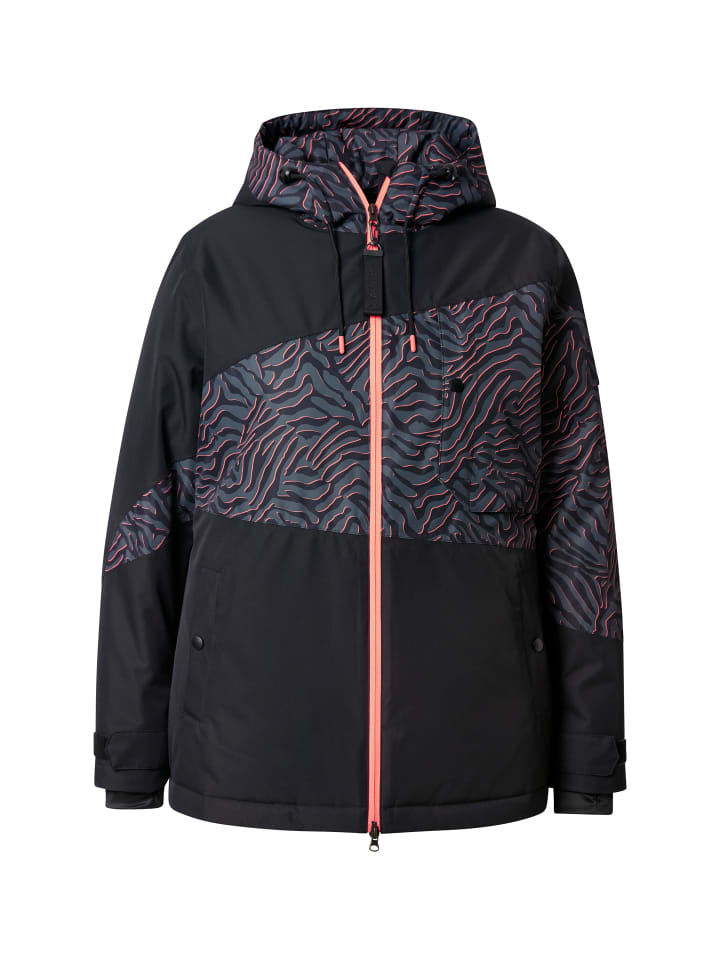 Куртка спортивного дизайна со спортивной цветовой гаммой и регулируемым капюшоном. Три функции: водонепроницаемость (10 000 мм водяного столба), ветрозащита, воздухопроницаемость (5000 г/м²/24 ч). Водоотталкивающая пропитка DWR и все швы дополнительно проварены. Двусторонняя молния, два кармана для рук на молнии, нагрудный карман, дополнительный карман для ски-пасса. Снегозащитные гетры на талии, манжеты с ветрозащитными клапанами и застежкой на липучке. Утягивающий шнурок на подоле, практичные внутренние карманы.