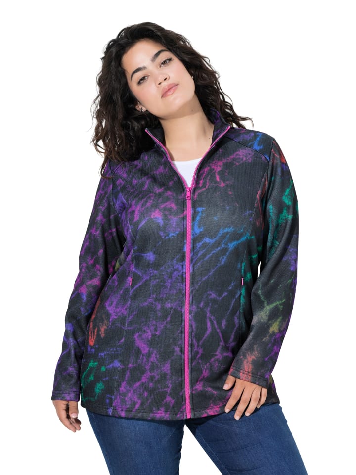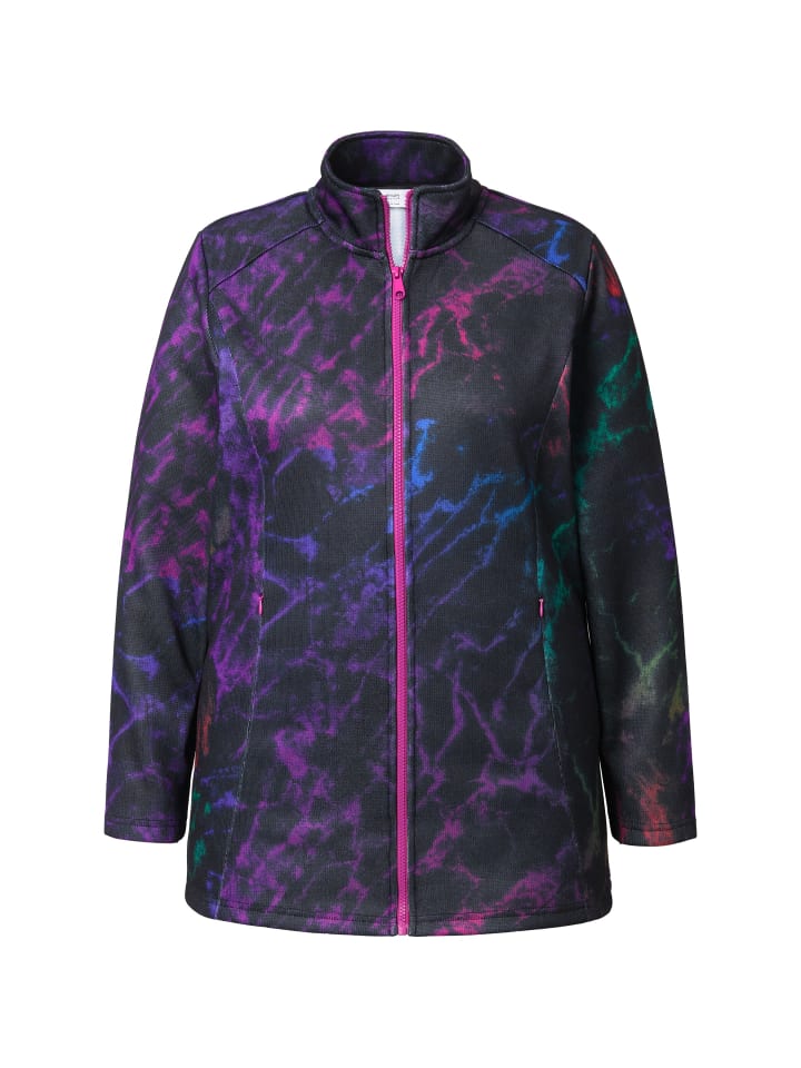 Трикотажная флисовая куртка, удобная посадка. Мягкий трикотаж с принтом по всей поверхности, уютная флисовая подкладка. Воротник-стойка, застежка-молния, 2 кармана на молнии. Длинные рукава.