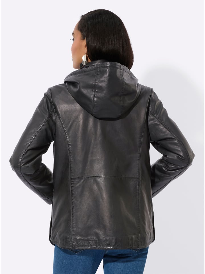 Эта классика должна быть в каждом стильном гардеробе! Куртка из кожи ягненка наппа идеально подходит для любого сезона! Эта модель впечатляет своей невероятно мягкой кожей ягненка наппа и мягкой, струящейся и легкой подкладкой. Особенно практичным элементом является съемный капюшон со шнурком. Дополнительные детали включают воротник-стойку, застежку-молнию, элегантные кнопки по бокам, длинные рукава, два внутренних кармана и практичные карманы на молнии. Утягивающие швы обеспечивают отличную посадку по фигуре.