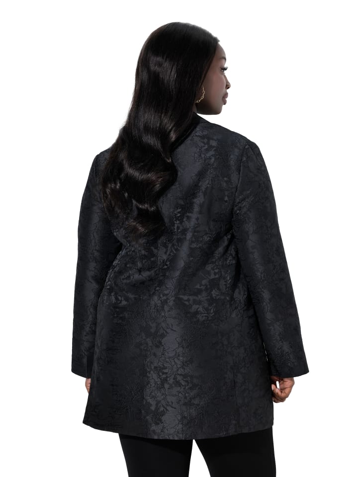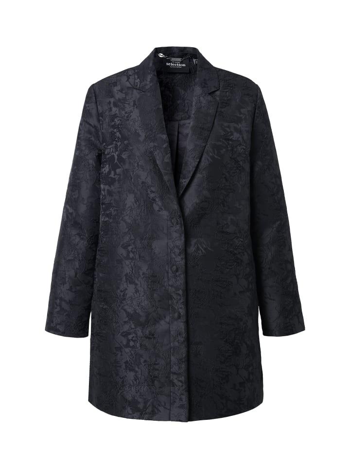 Жакет удлиненного А-силуэта из высококачественного жаккарда с цветочным рисунком. Отложной воротник, потайная планка на пуговицах и незаметные карманы в швах. Длинные рукава и подол с разрезами. Подкладка Smooth Selection.