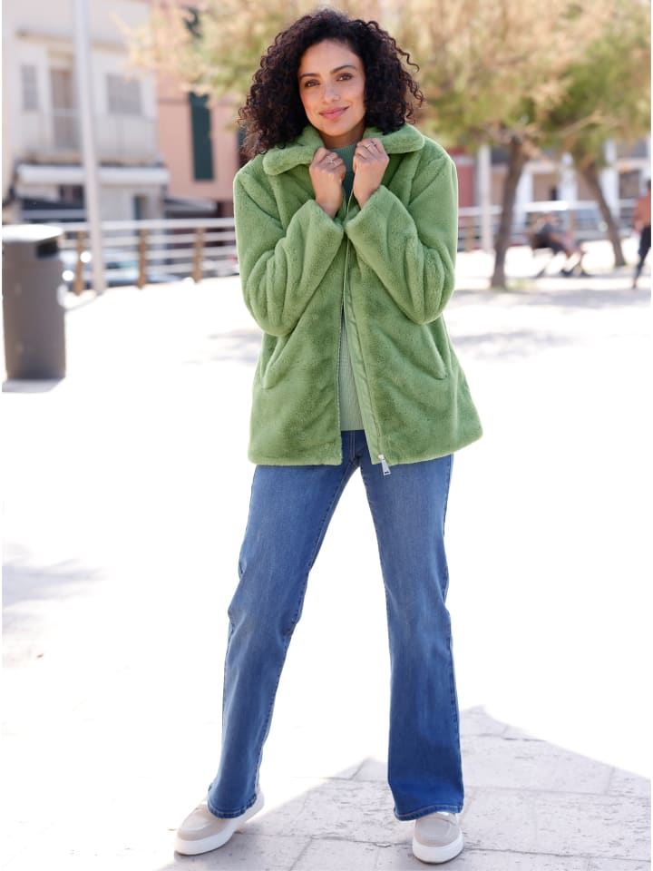 Уютная или модная? И то, и другое! Эта пушистая, мягкая и невероятно теплая куртка из искусственного меха - настоящий must-have. Она имеет отложной воротник и застежку-молнию с внутренней ветрозащитной планкой из бархатистой ткани. Два кармана и один дополнительный карман на подкладке. Изготовлена из переработанного полиэстера.