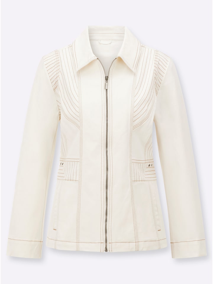 Эта повседневная джинсовая куртка - незаменимый предмет гардероба! Контрастные декоративные швы, фактурные швы и разделительные строчки спереди и сзади делают ее по-настоящему привлекательной и обеспечивают идеальную посадку. Отложной воротник, молния во всю длину и длинные рукава с манжетами и небольшим разрезом. Практичные детали включают два кармана на молнии в швах. Куртка соответствует инициативе «Сделано в Африке» (Cat. Made in Africa).