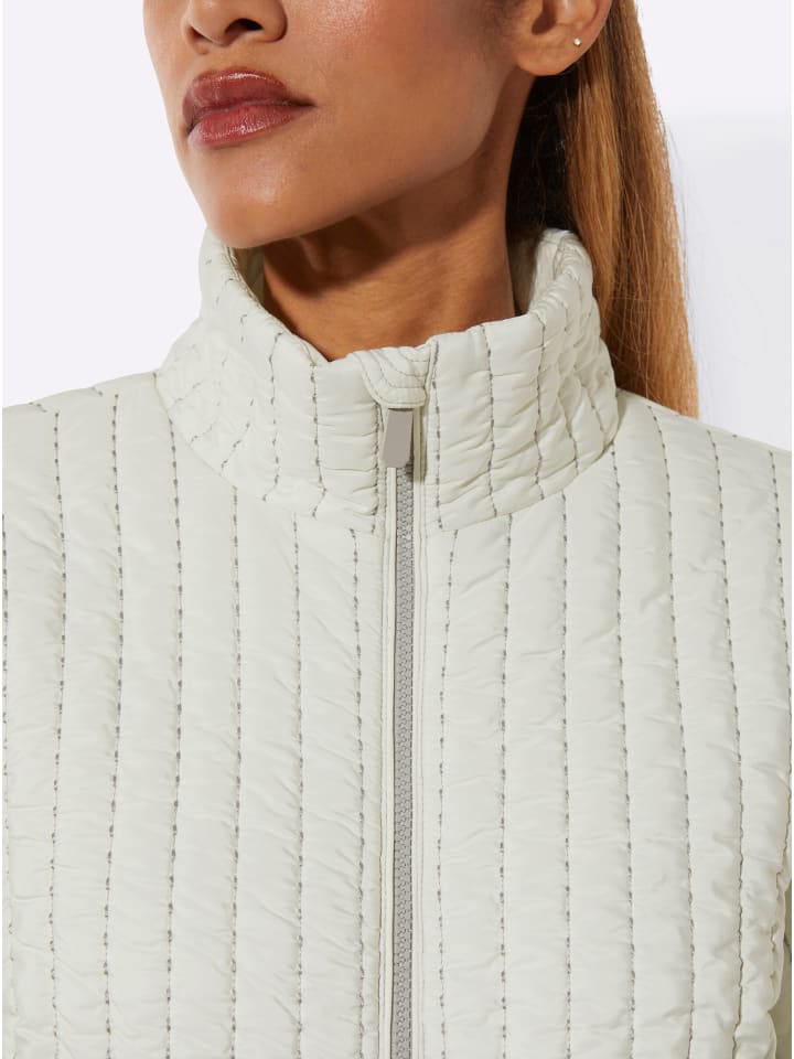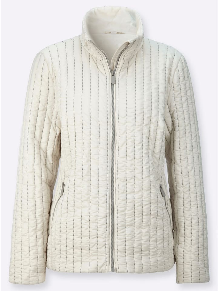 Оставайтесь стильными в межсезонье! Повседневная куртка с контрастной полосатой стежкой. Защитный воротник-стойка и два кармана на молнии. Молния по всей длине с карманом для шарфа или шали не запутаются. Изготовлено из переработанного полиэстера.