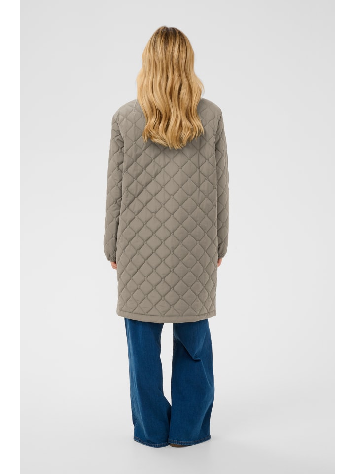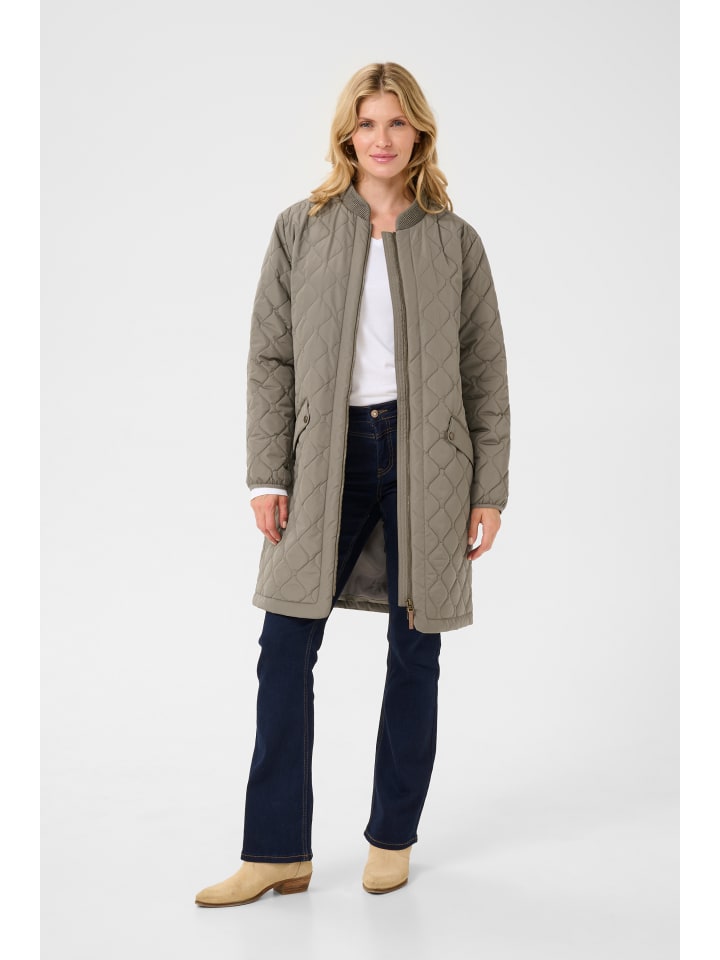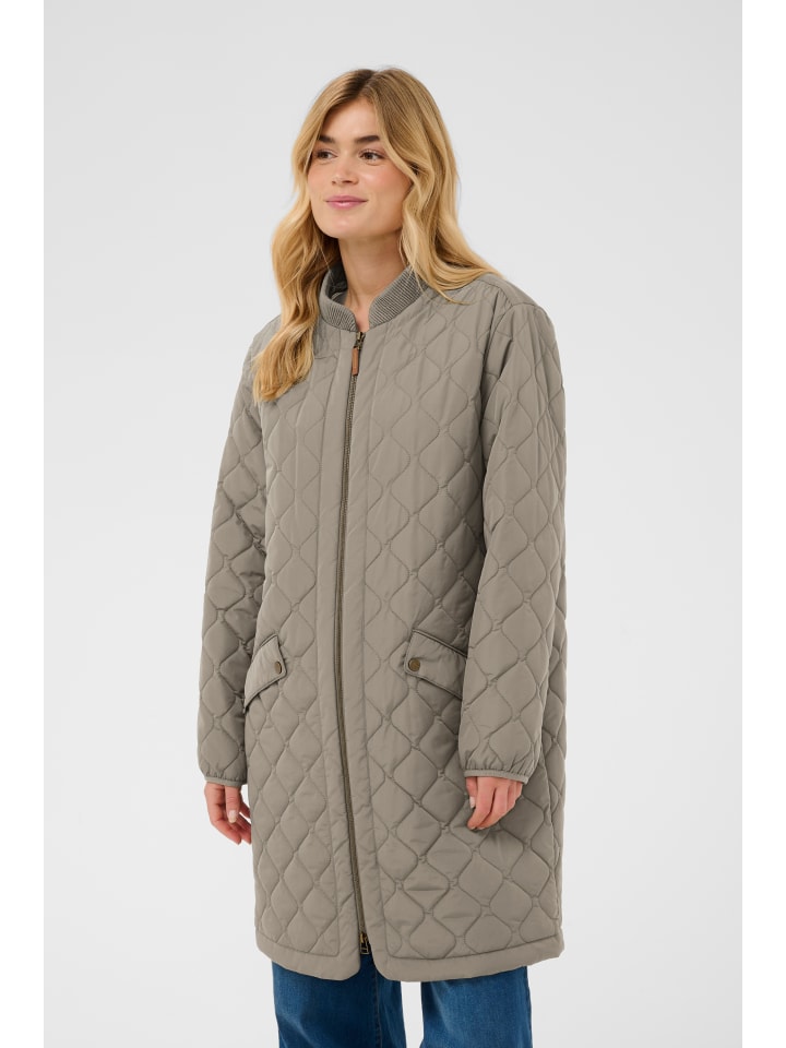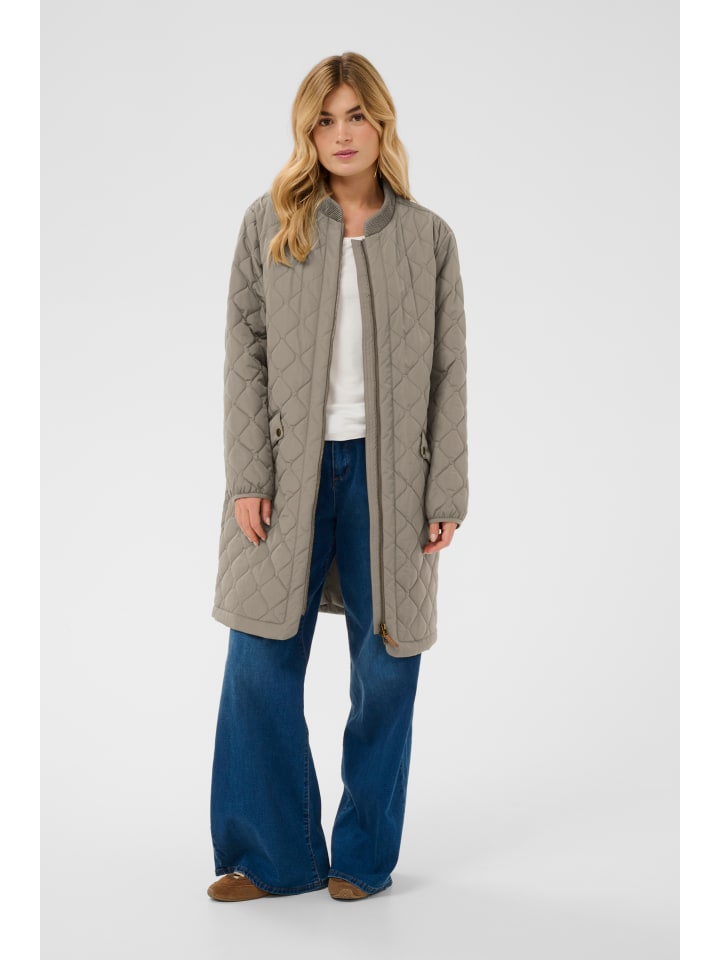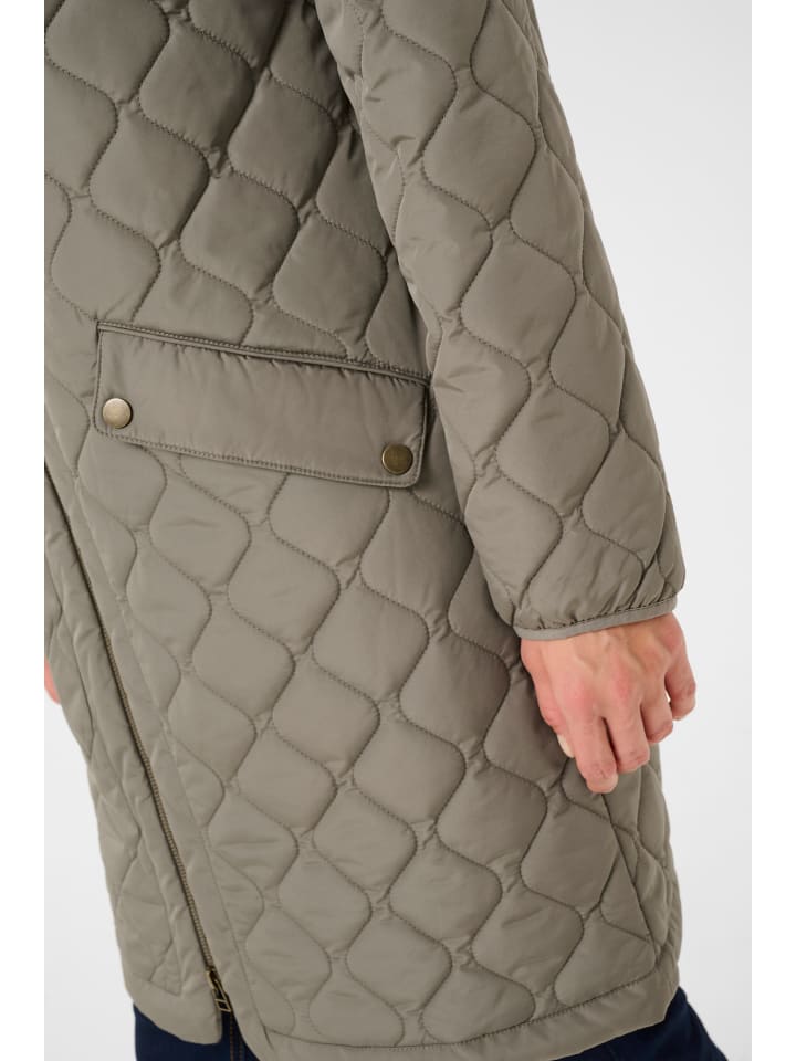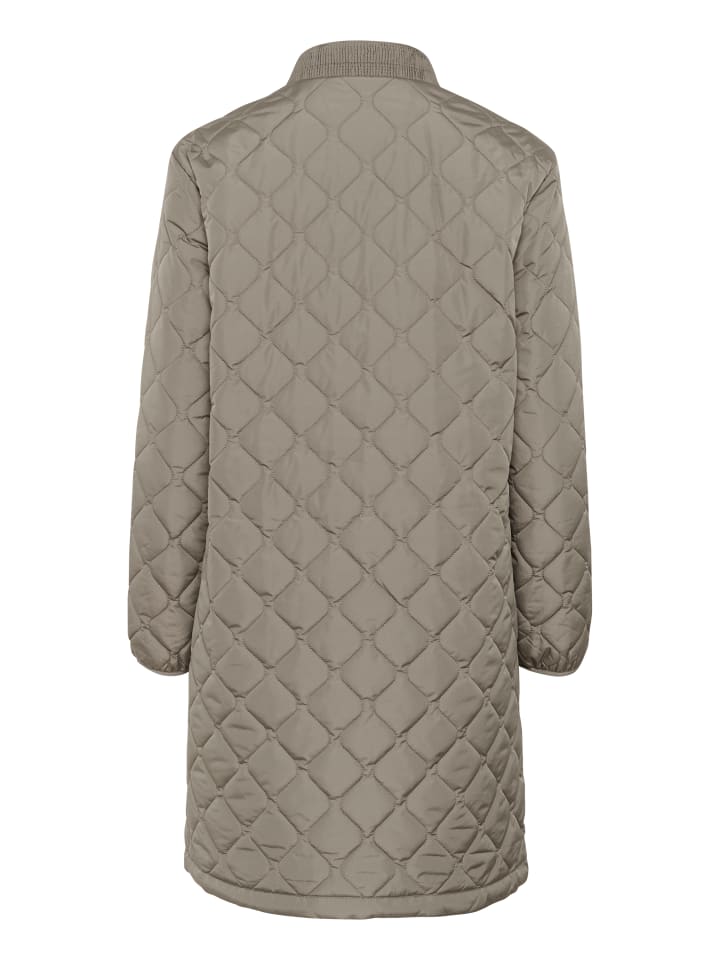 Это длинное стеганое женское пальто впечатляет свободным кроем и комфортом. Благодаря круглому вырезу, длинным рукавам и карманам на кнопках, оно универсально и идеально подходит для прохладных дней.