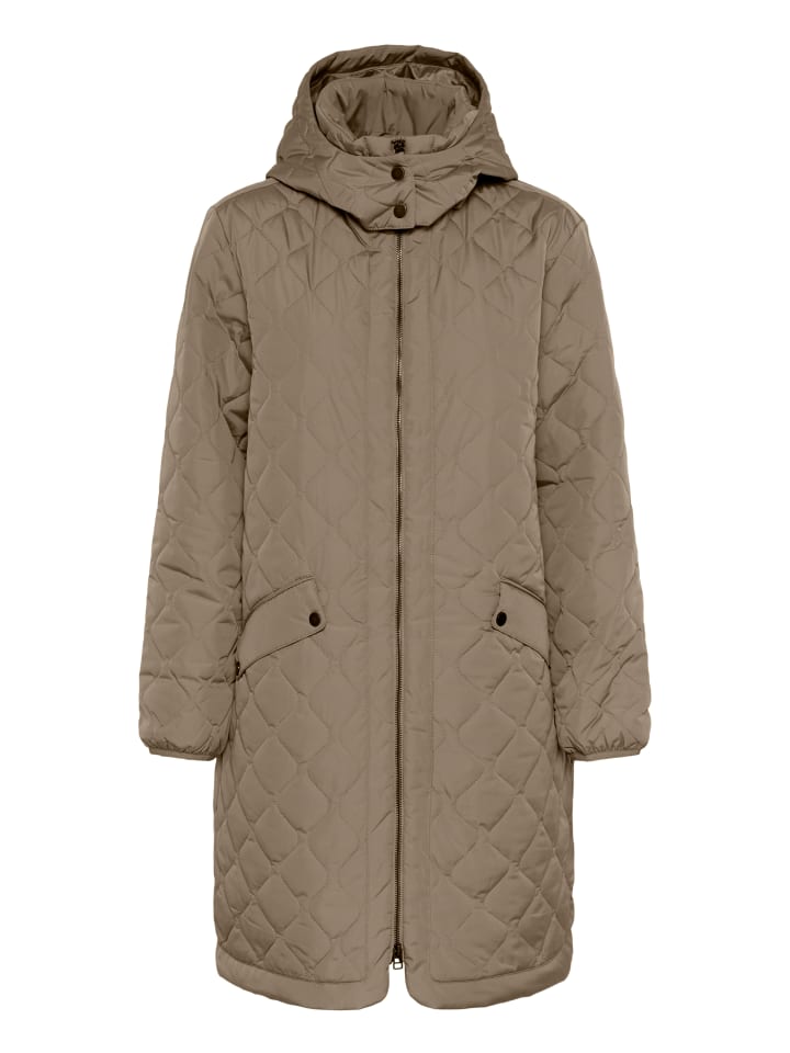 Это стеганое женское пальто с капюшоном, застежкой-молнией и практичными боковыми карманами обеспечивает комфортную посадку. Средняя длина обеспечивает комфорт и идеально подходит для повседневной носки.