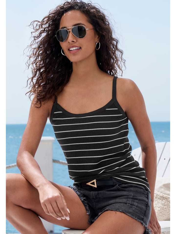 Майка Vivance, 2 шт. С горизонтальными полосками. Свободный крой. Высококачественная смесь хлопка и вискозы.