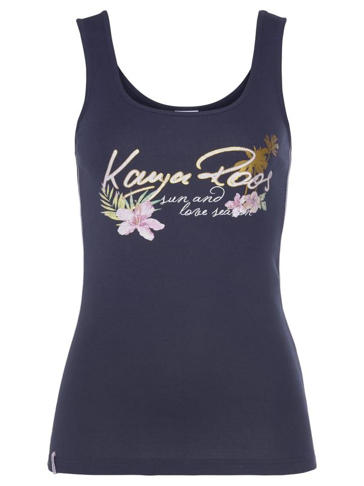 Классическая женская майка от KangaROOS. Длина до бедер, очень облегающая. С повседневным принтом. Высокая эластичность ребристого материала делает майку особенно удобной.