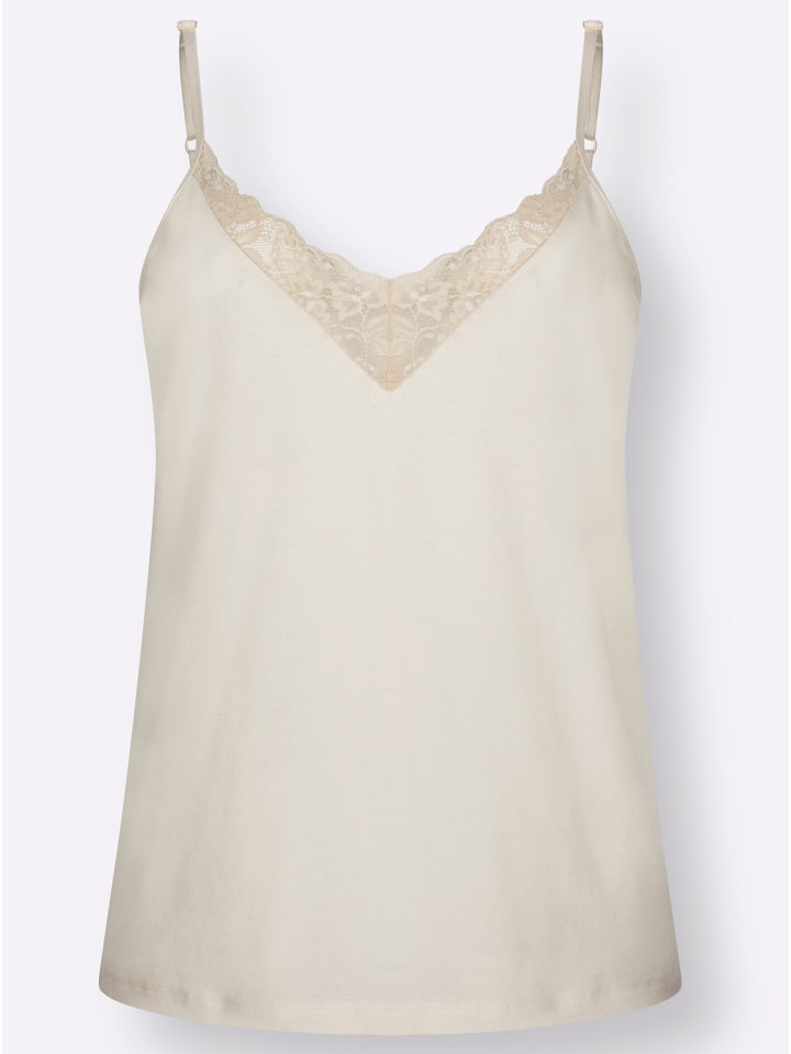 Необычайно красивый дизайн: майка от Wäschepur из чудесно мягкой смеси хлопка и модала. Слегка расклешенный крой обеспечивает красивую свободную посадку. Мягкое эластичное кружево спереди и регулируемые бретели сзади.