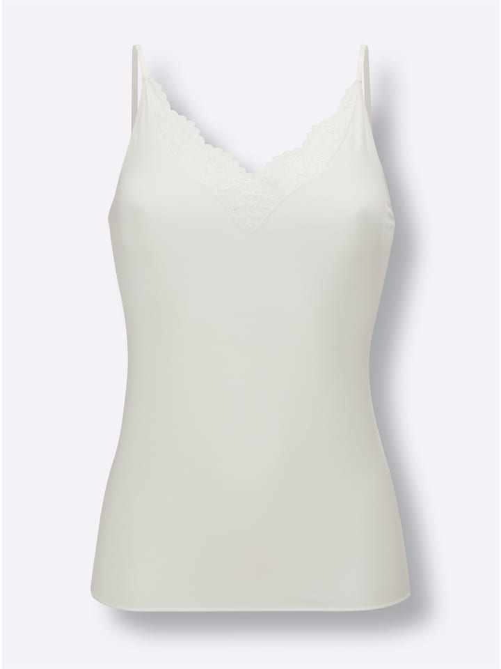 Красивая и невероятно удобная: майка от Nina von C. из приятного модала с шелковисто-матовым блеском. Нежное кружево вдоль V-образного выреза притягивает взгляд. Узкие регулируемые бретели сзади. Идеально подходит для многослойной одежды.