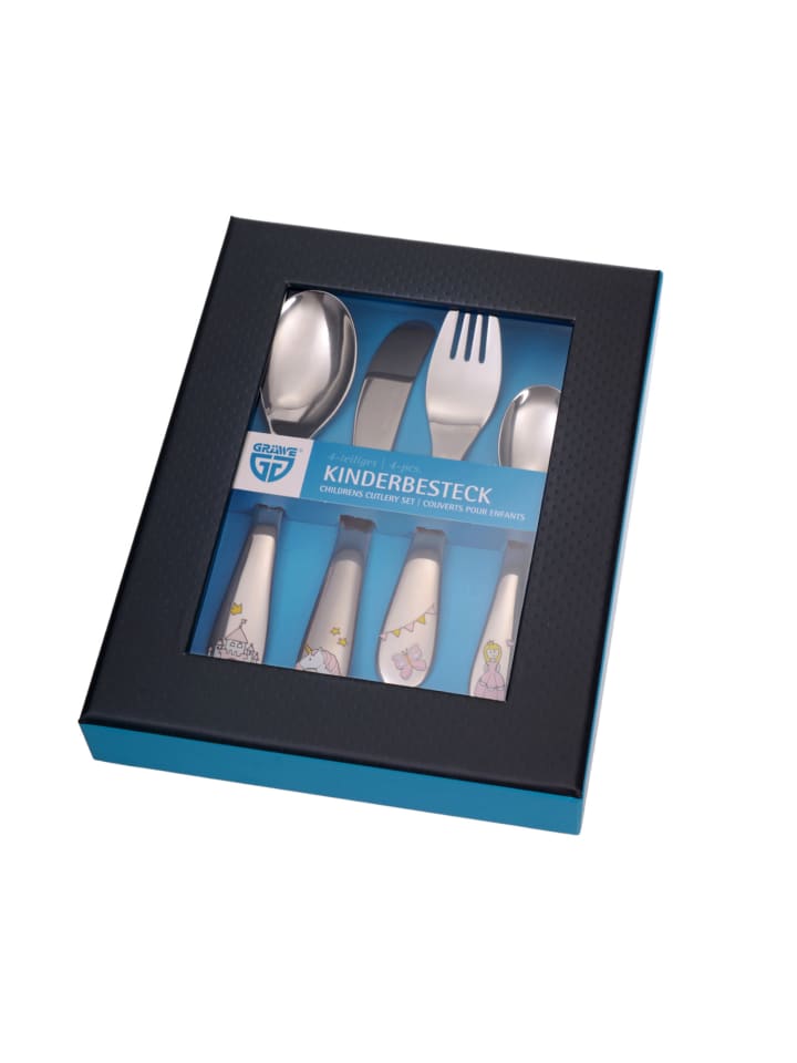 Детский набор столовых приборов, 4 предмета, PRINCESS, серебристый GRÄWE