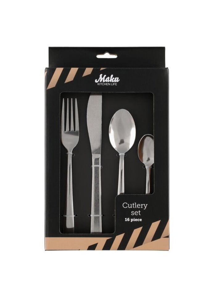 Полный набор на четыре персоны: набор столовых приборов Maku включает в себя все необходимое для сервировки еды на четверых, что делает его идеальным решением для семейных обедов или посиделок с друзьями.