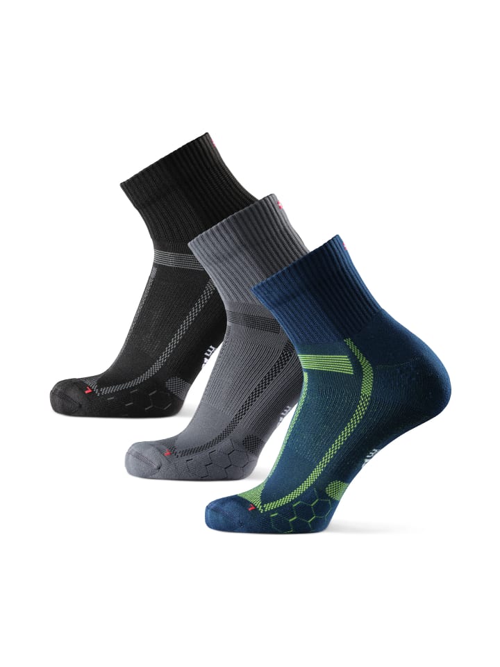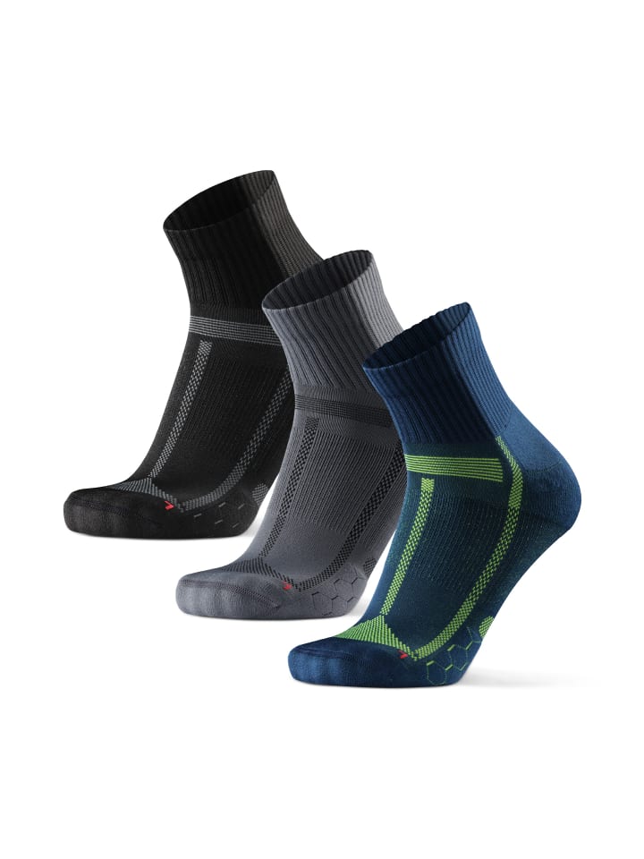 Наши нескользящие спортивные носки с поддержкой свода стопы и амортизацией обеспечивают мягкость, комфорт и отсутствие мозолей во время бега. Дышащие, легкие материалы и влагоотводящие вентиляционные панели сохранят ваши ноги свежими и сухими. Эти мягкие спортивные носки разработаны для снижения усталости ног и идеально подходят для бега на длинные дистанции, например, марафона. Они также идеально подходят для повседневного носка. Наши спортивные носки разработаны и протестированы с участием спортсменов, занимающихся видами спорта на выносливость, чтобы гарантировать высочайшие стандарты качества и эффективности.