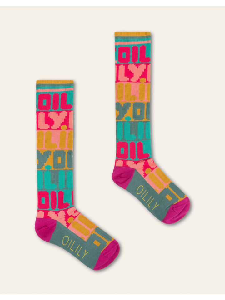 Носки? Они всегда должны быть яркими, ведь они дополняют ваш образ, а вы - лучик солнца! Эти гольфы с веселыми полосками и ярким логотипом Oilily. - Сделано в Португалии