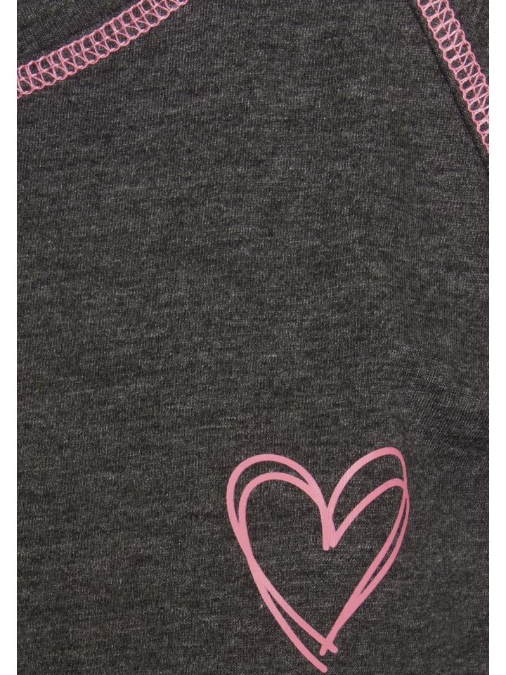 - С длинными рукавами реглан, круглым вырезом и неоновым принтом в виде сердца на груди.