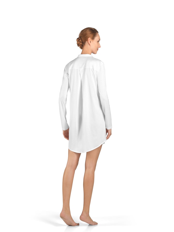 Для любителей HANRO: легкий одинарный трикотаж из хлопка Supima с мягкой мерсеризацией обеспечивает особый комфорт. Эта современная ночная сорочка выполнена в классическом рубашечном стиле. Воротник, лацканы, планка на пуговицах и закругленный подол создают спортивный, но женственный образ.