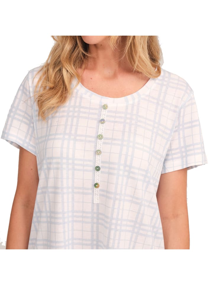 Эта женская ночная рубашка с короткими рукавами - идеальный выбор для тех, кто ищет свежую и женственную одежду для сна или стильного отдыха дома. Ее струящийся и романтичный дизайн делает ее идеальной для отдыха с абсолютным комфортом.