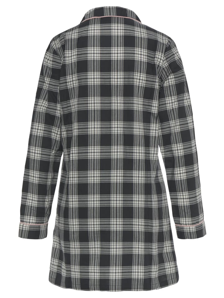 Классическая фланелевая ночная рубашка с отложным воротником, накладным нагрудным карманом и планкой на пуговицах. Комфортный хлопок.