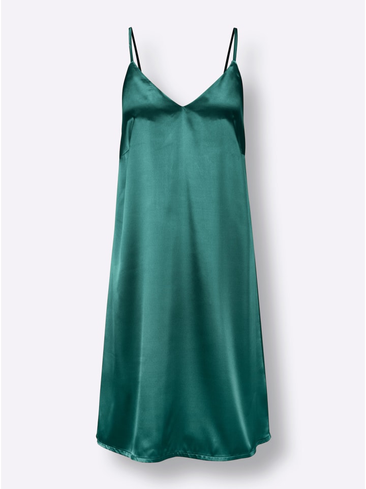 Вам понравится эта ночная рубашка! С V-образным вырезом и тонкими регулируемыми бретелями. Роскошный мерцающий атлас.