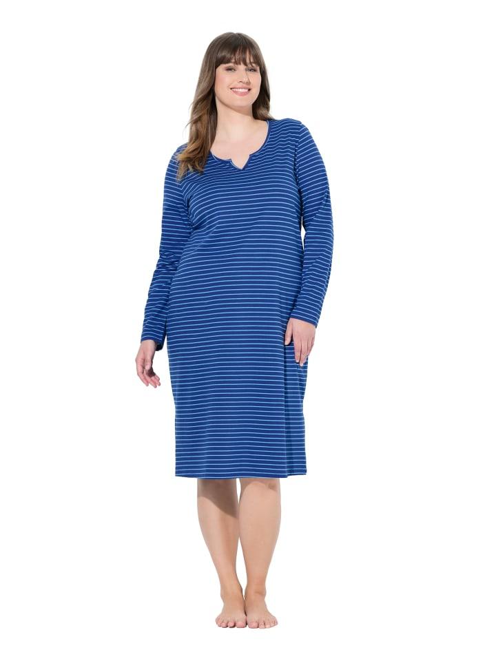 Ночная рубашка из органического хлопка в тонкую полоску. Удобный прямой крой, туникообразный вырез и длинные рукава. Разрезы по бокам для дополнительного комфорта. Органический; сертифицирован ECOCERT Greenlife, лицензия № 152026.