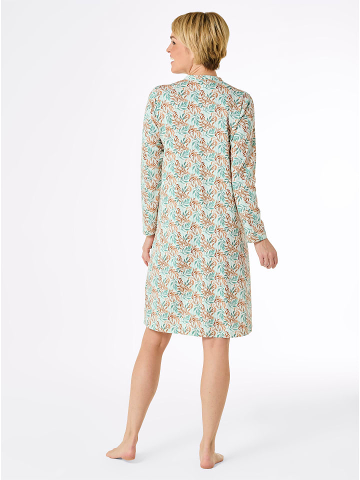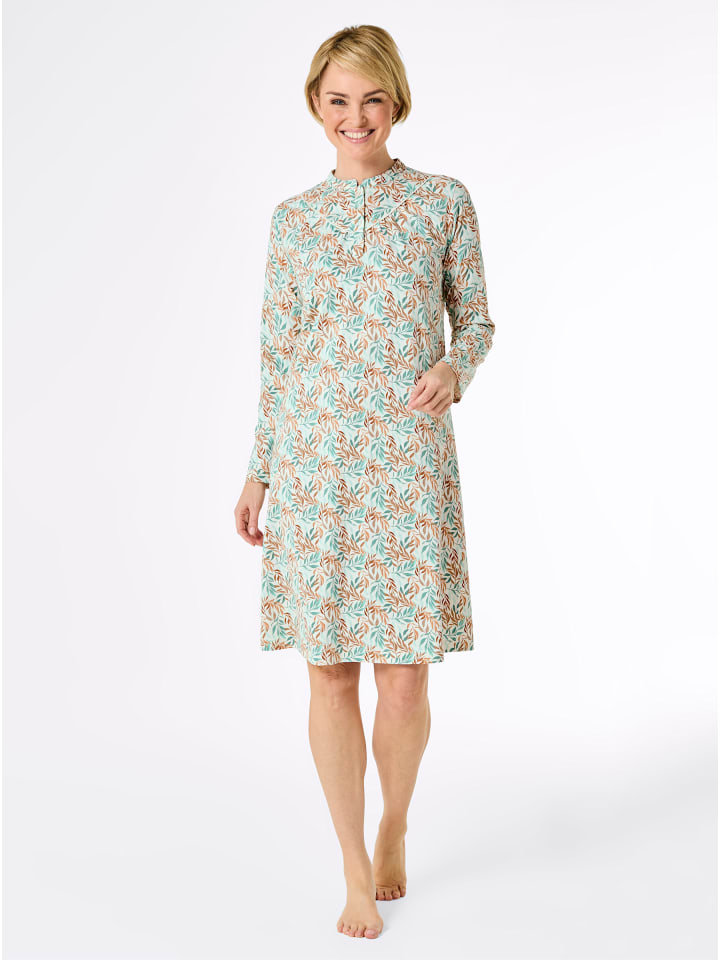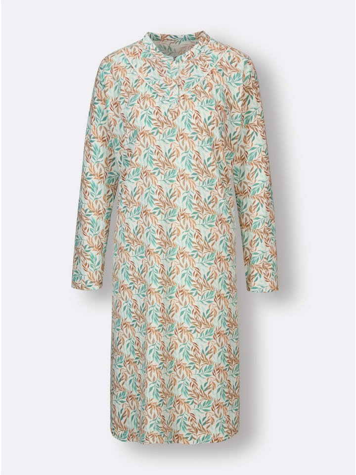 Эта ночная рубашка изготовлена с особым вниманием к деталям: выгодно подчеркивающий фигуру А-силуэт с изящным воротником-стойкой, длинной планкой на пуговицах и заостренной кокеткой с окантовкой и сборками. Сплошной цветочный принт. Сертифицировано GOTS.