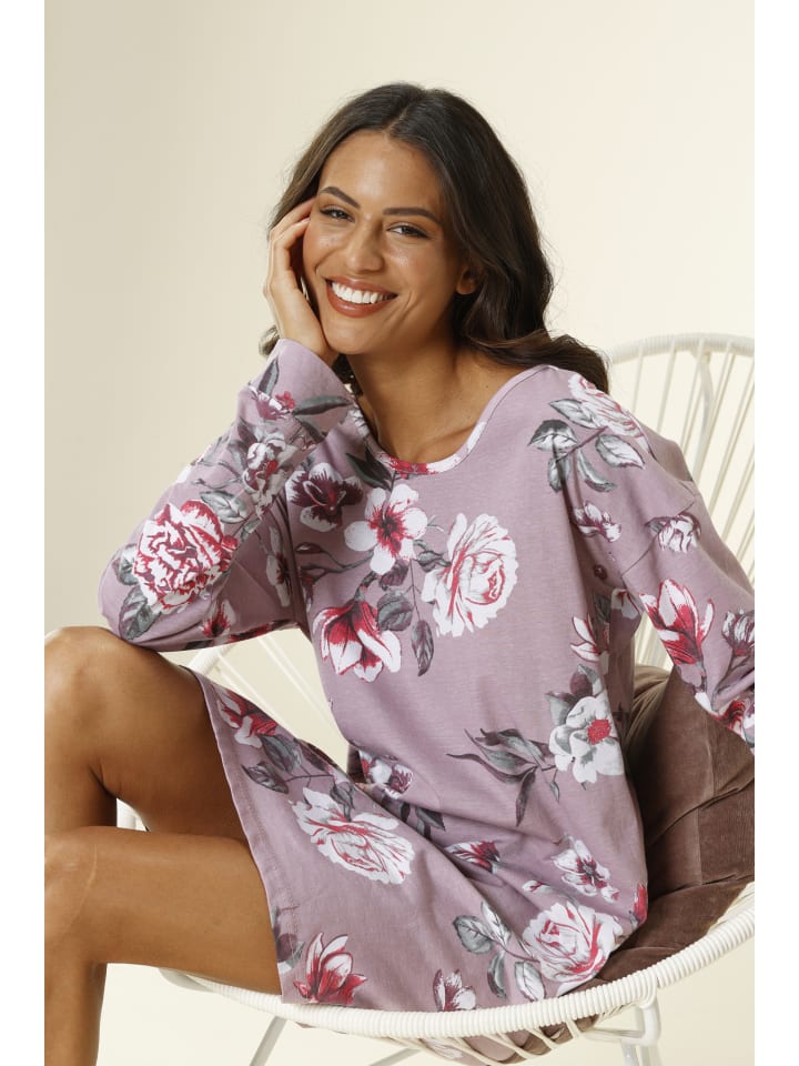 - Короткая ночная рубашка с красивым цветочным принтом по всей поверхности.