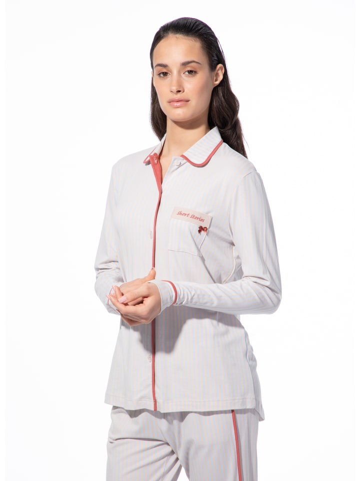Женский пижамный верх Short Stories выполнен в классическом стиле. Верх с классическим рубашечным воротником и застежкой на пуговицы обеспечивает удобство ношения и стильный вид. Изящные вертикальные полоски нежных тонов придают комплекту изысканный вид, а контрастная окантовка теплого красного цвета завершает элегантный образ. Изюминкой является нагрудный карман, украшенный изящным бантом и этикеткой Short Stories, что добавляет женственности. Этот комплект, изготовленный из мягкой, эластичной смеси хлопка и модала, обеспечивает исключительный комфорт. Мягкая и дышащая ткань обеспечивает оптимальную терморегуляцию и максимальный комфорт в течение всей ночи. Добавьте нотку элегантности в свою коллекцию одежды для сна, сочетая этот стильный верх пижамы Short Stories с подходящими пижамными низами, которые впечатляют своим вневременным дизайном и продуманными деталями.