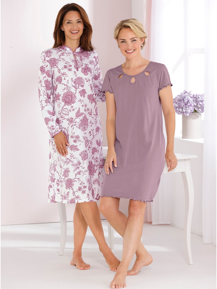 Красивый вырез с элегантными каплевидными вырезами придает этой ночной рубашке необыкновенно женственный вид! Стильная подвернутая кромка рукавов и подола. Мягкий трикотаж. Соответствует инициативе «Хлопок, сделанный в Африке».
