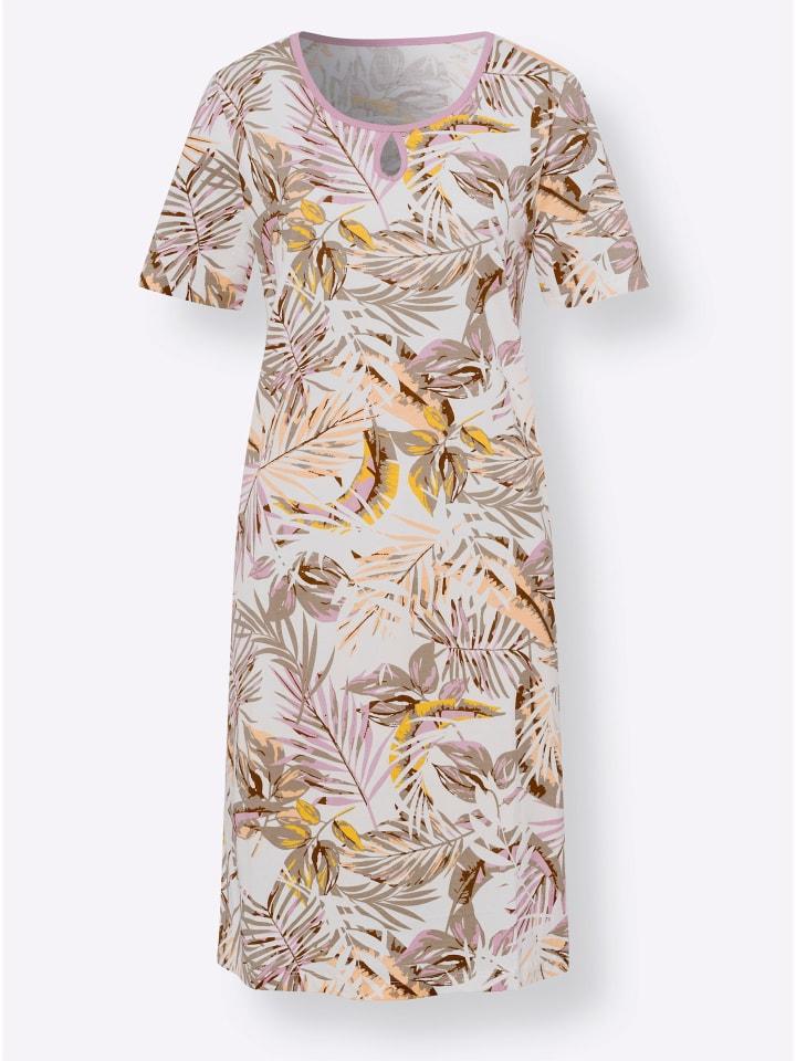 Невероятно романтичная ночная рубашка в стиле джунглей! Круглый вырез с каплевидными вырезами отделан в тон. Боковые разрезы по низу обеспечивают комфортную свободу движений.