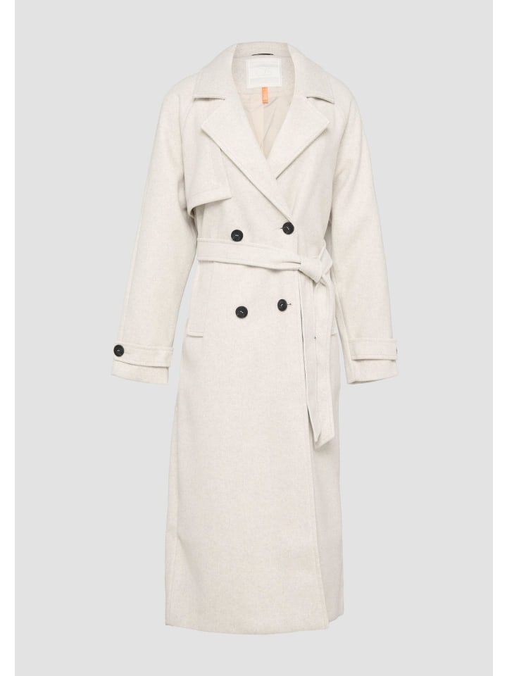 Ваш стильный спутник на каждый день: этот тренчкот из шерсти сочетает в себе элегантность и непринужденный стиль. С рукавами реглан и завязывающимся поясом он идеально подходит для вашего делового или повседневного образа. Уютный и слегка теплый - ваш новый любимый предмет одежды для прохладных дней.