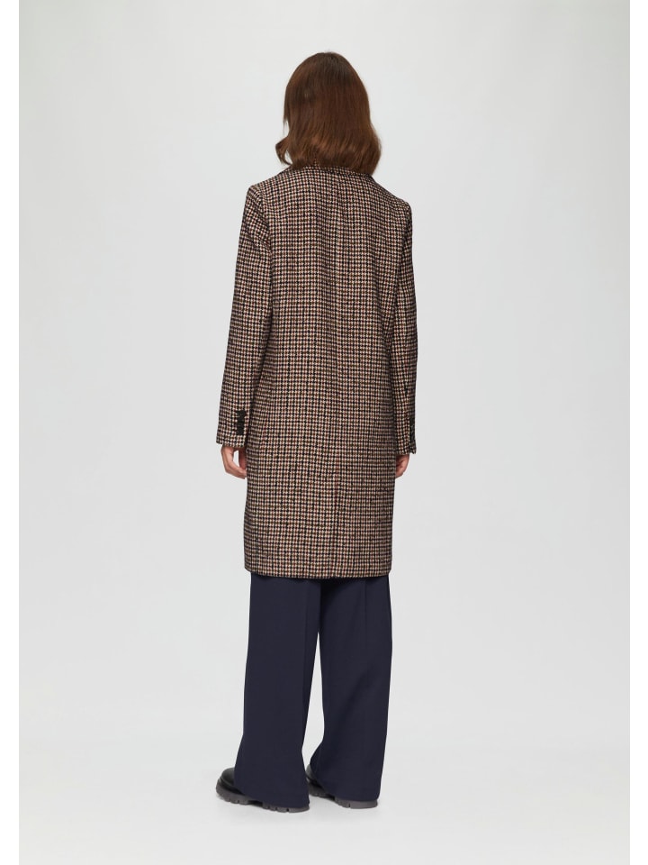 Это классическое клетчатое пальто из смесовой шерсти с заостренными лацканами стильно согреет вас в прохладные месяцы. Практичные боковые и внутренние карманы, элегантная планка на пуговицах и мягкий классический крой делают его идеальным повседневным спутником.