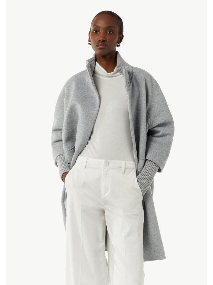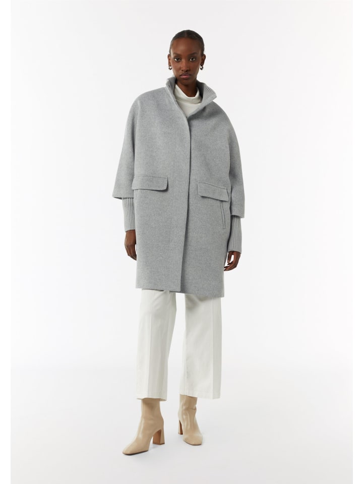 Ваш стильный спутник в прохладные дни: это пальто свободного кроя для отдыха на природе прекрасно подчеркивает вашу фигуру. Ребристый трикотажный воротник и рукава добавляют модные акценты и обеспечивают дополнительную защиту от ветра. Сочетайте его с ботинками для создания повседневного образа или с туфлями-лодочками для создания элегантного образа. Это универсальное шерстяное пальто идеально подходит для многослойного образа на любой случай.