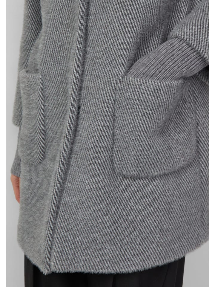 Элегантность и тепло: это пушистое пальто с воротником-стойкой сочетает в себе стиль и комфорт. Классический крой и накладные карманы делают его универсальным аксессуаром. Ребристые манжеты и застежка на кнопки придают ему изысканный вид - идеальный вариант для создания уверенного образа в холодное время года.