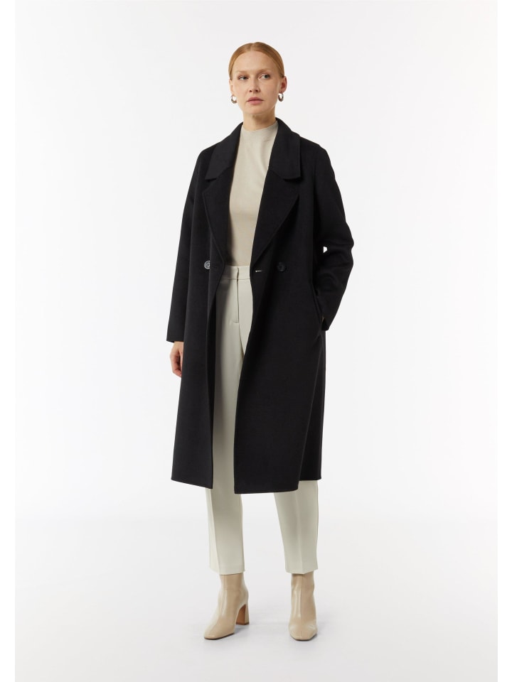 Это пальто в стиле блейзер сочетает в себе элегантность и функциональность. Теплая двусторонняя шерстяная ткань обеспечит вам стильное тепло в прохладные дни. Свободный крой и шлица сзади гарантируют свободу движений, а заостренные лацканы и двубортная застежка на пуговицы добавляют классический штрих. Идеально подходит для создания образа в стиле casual-chic - сочетайте с кроссовками или ботильонами.