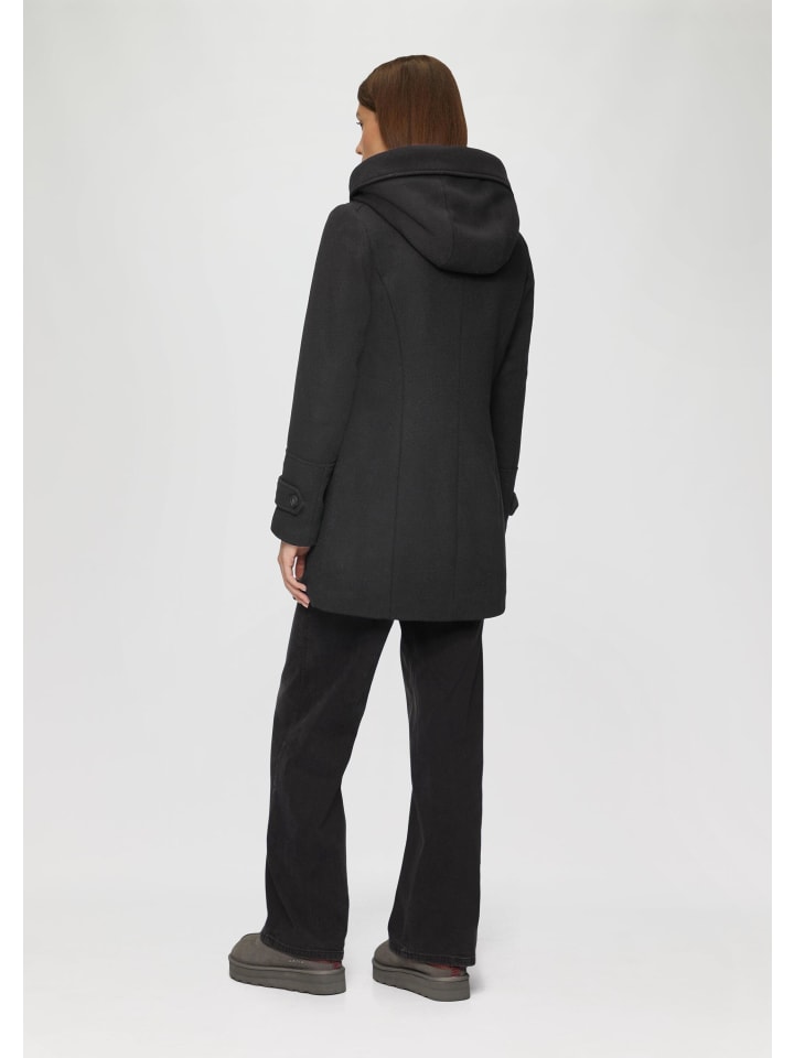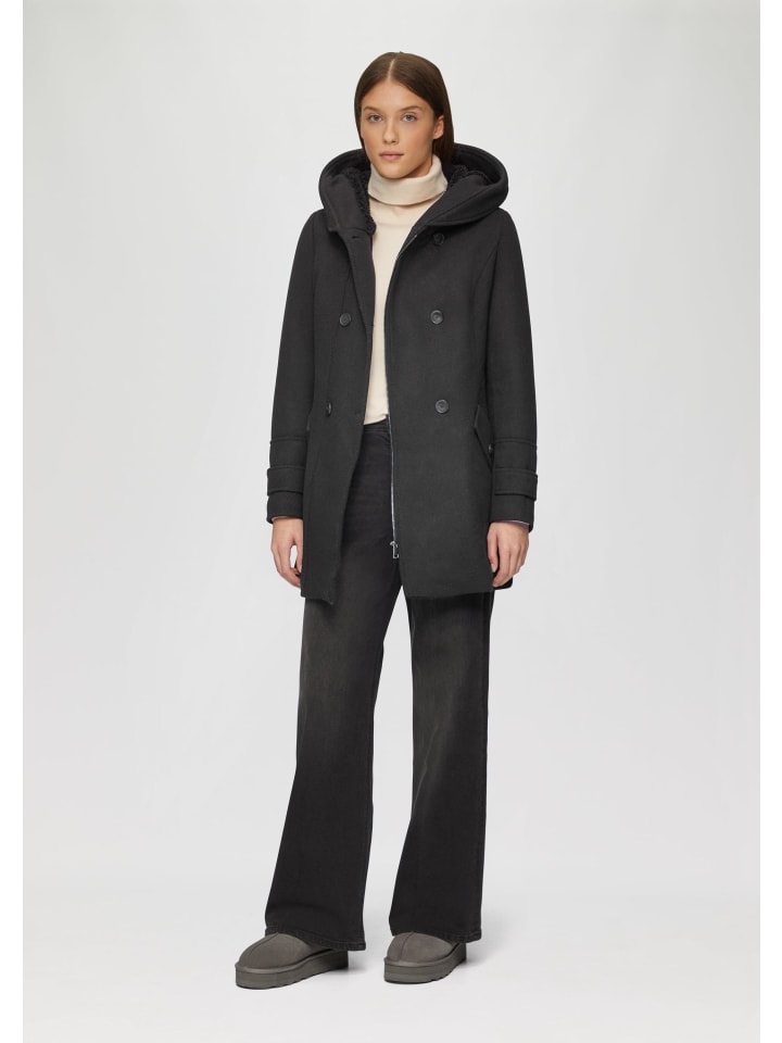 Это стильное пальто из текстурированной шерсти согреет вас благодаря уютной подкладке из плюшевого флиса. Благодаря отстегивающемуся капюшону и практичным прорезным карманам оно станет идеальным спутником в холодные дни.