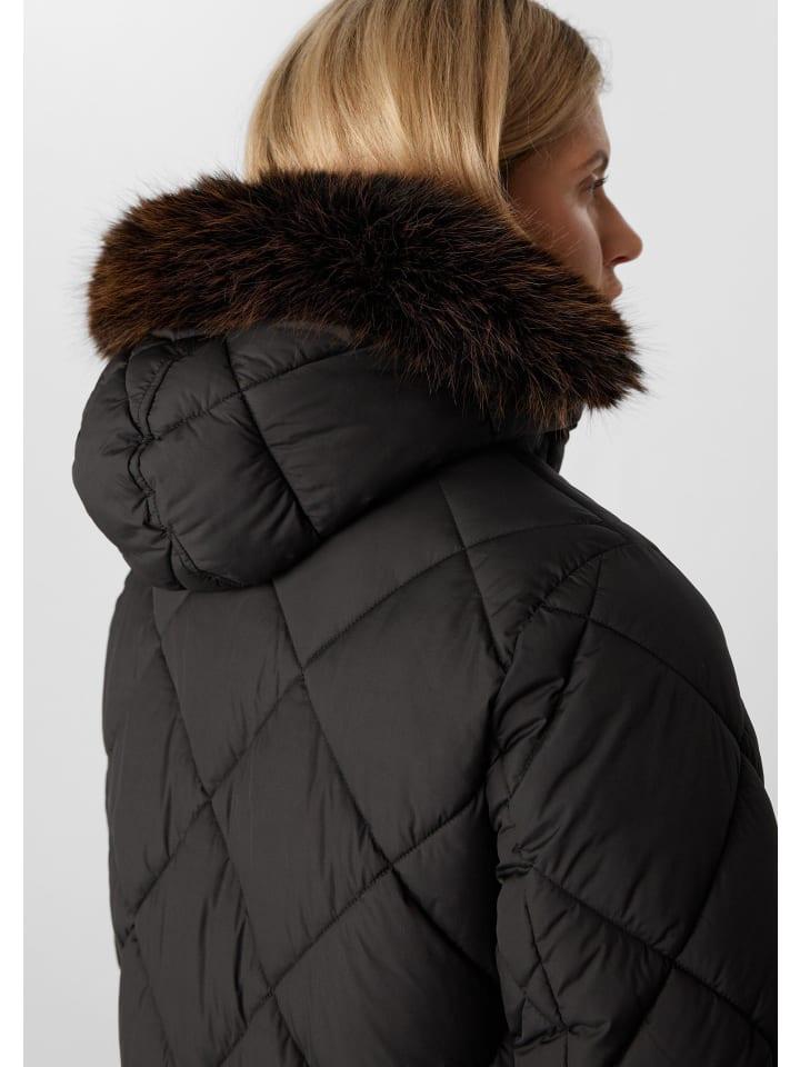 Стильный спутник для активного отдыха: это длинное стеганое пальто прямого кроя сочетает в себе функциональность и модный дизайн. Элегантная ромбовидная стежка, уютный вязаный воротник и практичные прорезные карманы делают его идеальным зимним аксессуаром. Теплая саржевая подкладка и синтетический наполнитель обеспечивают максимальный комфорт. Съемный капюшон и молния позволяют создавать разнообразные образы в любую погоду.