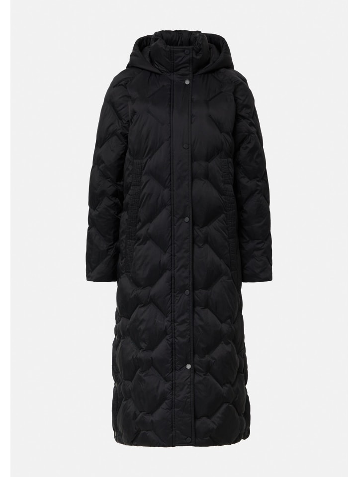 Элегантное пальто для стильных искателей приключений: это удлиненное стеганое пальто А-силуэта сочетает в себе функциональность и городской стиль. Защитный воротник-стойка, практичные лямки для рюкзака и синтетический утеплитель делают его идеальным спутником в прохладные дни. Изящная вышивка и двусторонняя молния подчеркивают его высочайшее качество. Боковые прорезные карманы и ветрозащитные манжеты обеспечивают дополнительный комфорт.