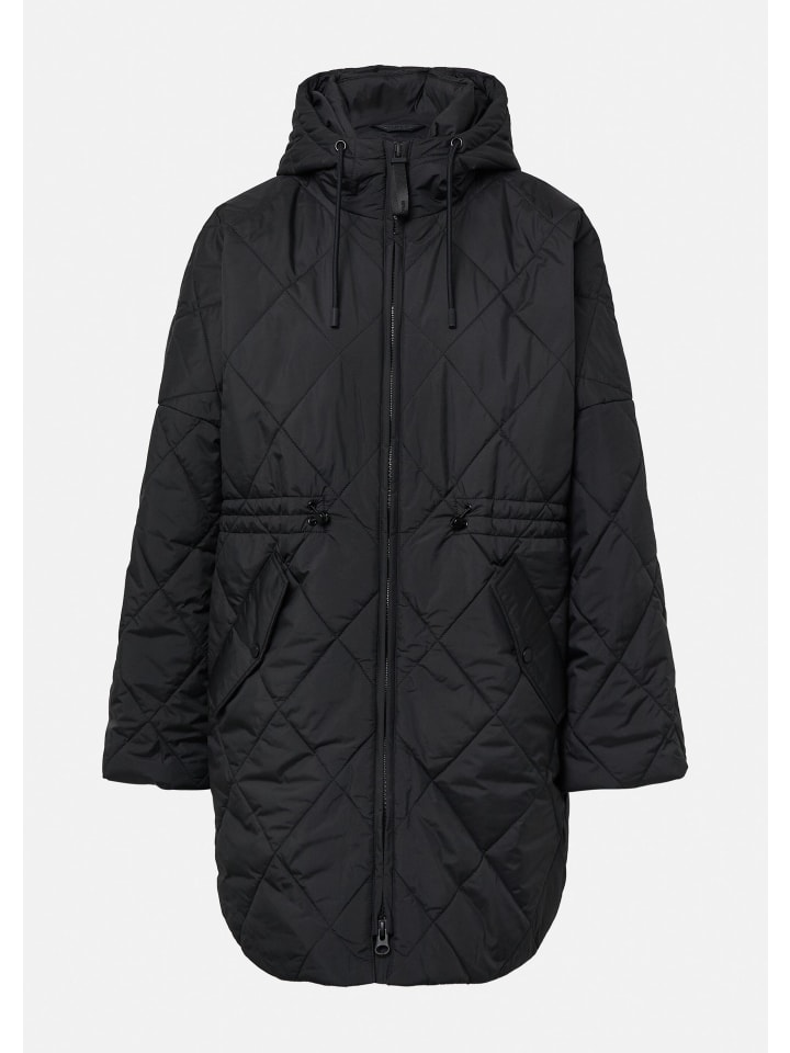 Элегантность и функциональность: эта широкая куртка-кейп с ромбовидной стежкой станет вашим стильным спутником в прохладные дни. Длина миди, выполненная из креповой ткани с теплой подкладкой из тафты и капюшоном, обеспечивает оптимальную защиту. Карманы на молнии и прорезные карманы сочетают комфорт и модный стиль. Создайте свой образ с уникальной спинкой-борцовкой и насладитесь свободой движений, которую обеспечивает крой кейпа.