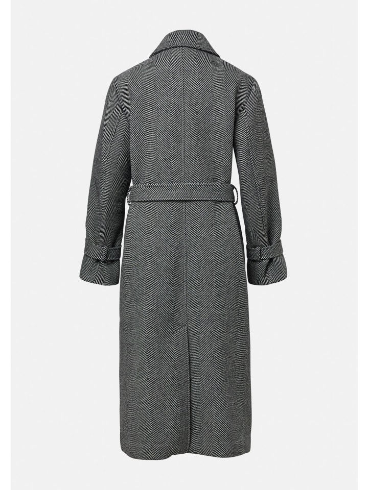 Этот элегантный тренчкот из высококачественной шерстяной смесовой ткани с узором «елочка» станет вашим стильным спутником как для активного отдыха, так и для деловых встреч. Ощутите легкое тепло и саржевую подкладку. Длинный крой прямого кроя с завязывающимся поясом и двубортной застежкой создает женственный силуэт. Практичные прорезные карманы и шлица сзади дополняют классический, но модный дизайн. Идеально подходит для создания уверенного образа в любой ситуации.