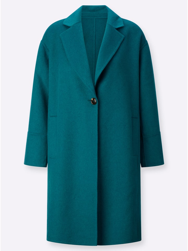 Это пальто станет вашим стильным спутником в межсезонье. Оно отличается свободным, модным кроем с отложным воротником и застежкой на одну пуговицу. Два вертикальных прорезных кармана. Швы обеспечивают оптимальную посадку. Широкие манжеты на рукавах. Высококачественная двусторонняя ткань без подкладки с добавлением шерсти.