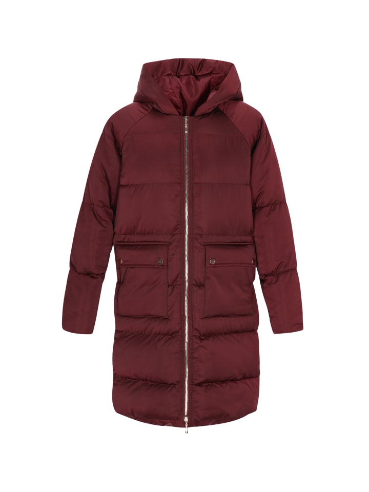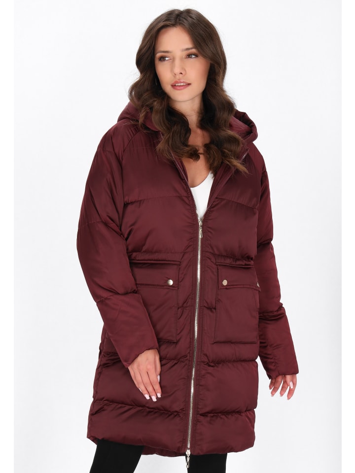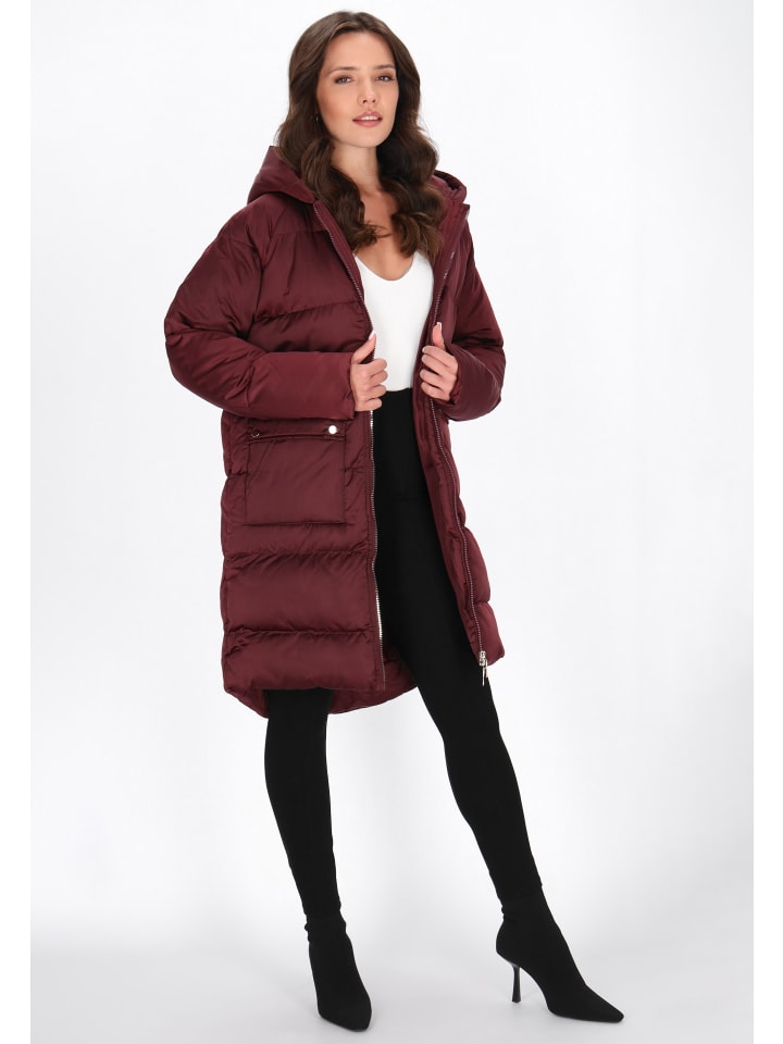 - Пальто прямого кроя с капюшоном и длинными рукавами