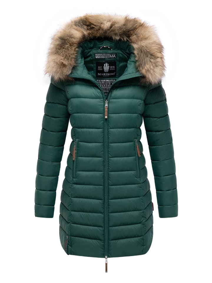Женское зимнее стеганое пальто средней плотности с капюшоном из искусственного меха от Marikoo