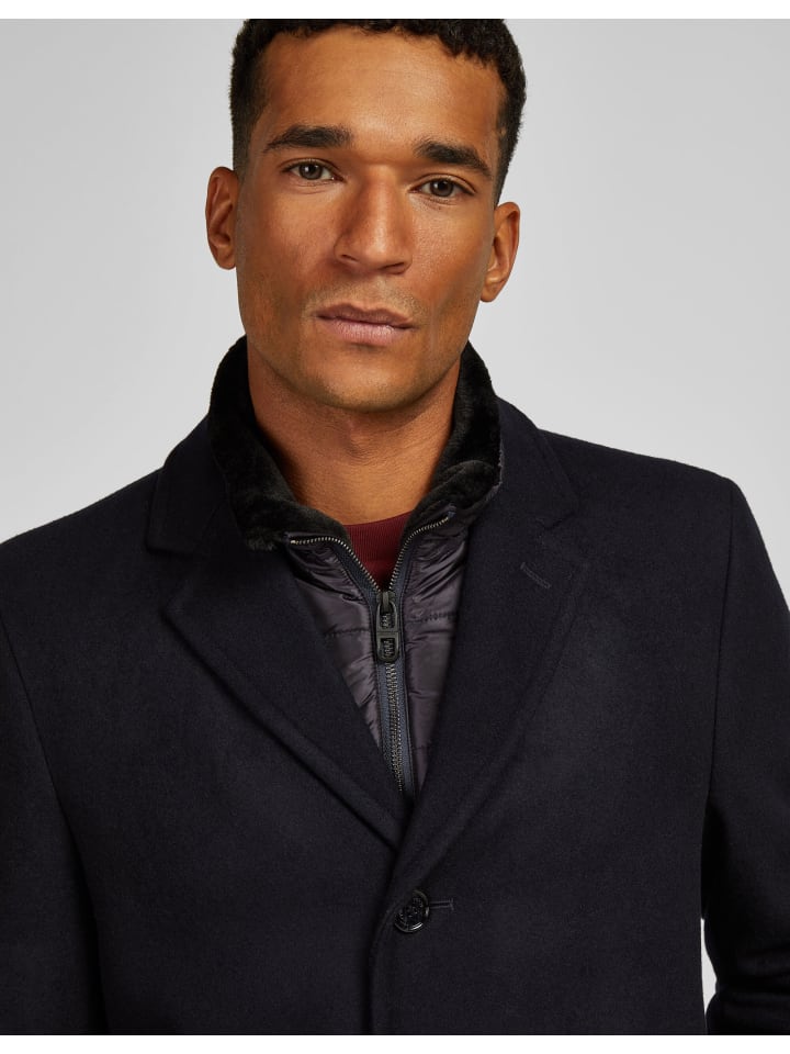 Это элегантное и в то же время спортивное шерстяное пальто сочетает в себе стильную изысканность и съемную нейлоновую подкладку. Воротник из веганского меха добавляет современный и роскошный вид, а крой создает облегающий силуэт и обеспечивает комфорт.
