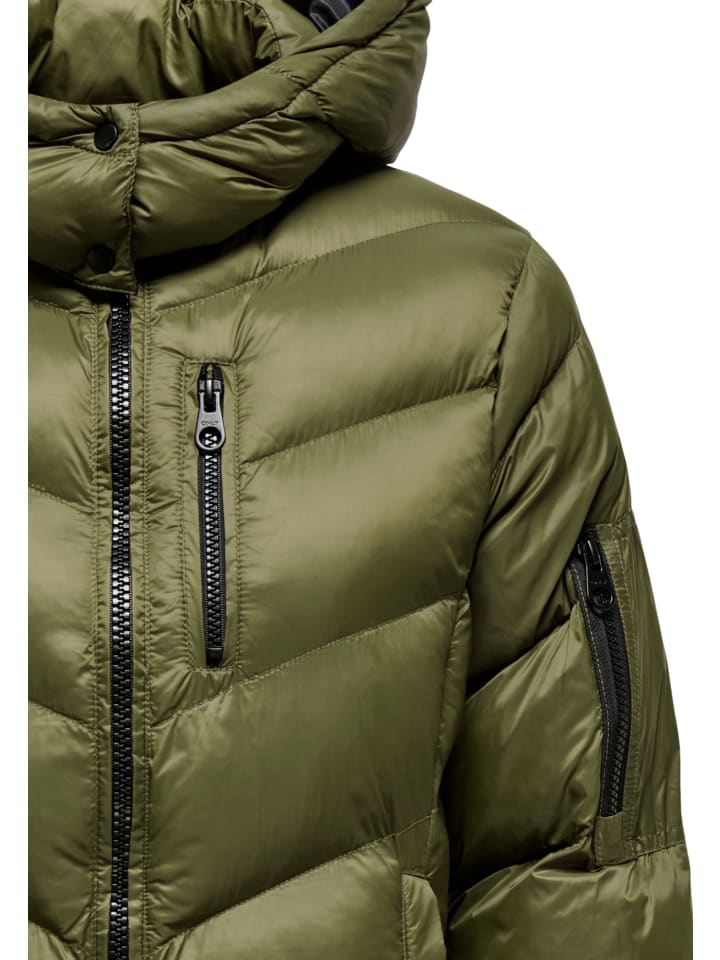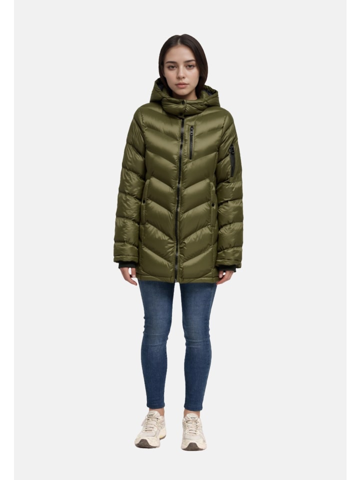 Хотите тепла и стильного внешнего вида? Это женское стеганое пальто не только согреет, но и будет выглядеть модно. Длина до бедра обеспечивает идеальную защиту в холодные дни. Высокий капюшон с застежкой на шнурок и кнопки надежно защищает от ветра и дождя. Внутренний воротник-стойка обеспечивает дополнительное тепло. Молния во всю длину позволяет легко надевать и снимать пальто. Практичные особенности включают передние карманы на кнопках, карман на рукаве и нагрудный карман - все на молнии для надежного хранения. Манжеты с внутренней резинкой предотвращают появление холодных пятен. Теплая подкладка обеспечивает уют и комфорт даже в морозную погоду. Пальто, идеально сочетающее в себе функциональность и стиль. Выходите на улицу, и спина будет в тепле.
