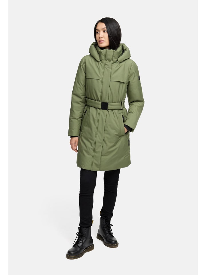 ВНЕШНИЙ ВИД: Это зимнее пальто впечатляет своим чистым силуэтом и тонким поясом. Идеально подходит для современных, элегантных образов - в сочетании с ботинками, трикотажем или джинсами.