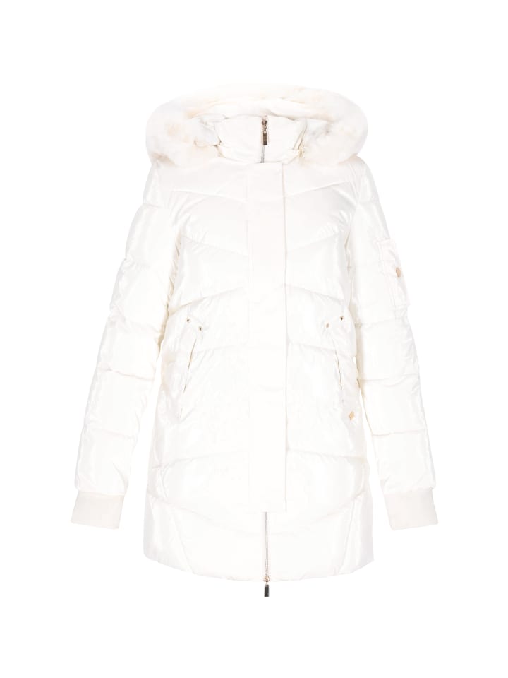 - Пальто прямого кроя с капюшоном и длинными рукавами