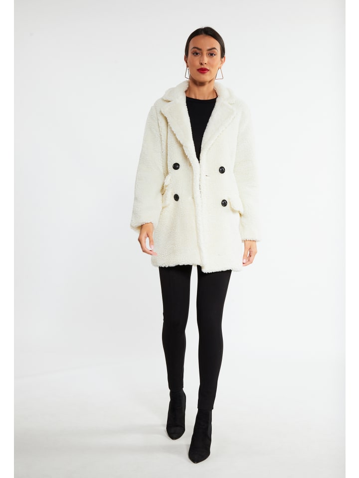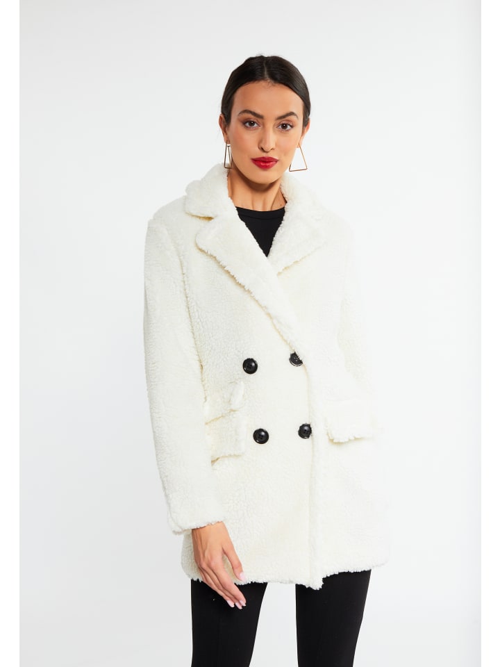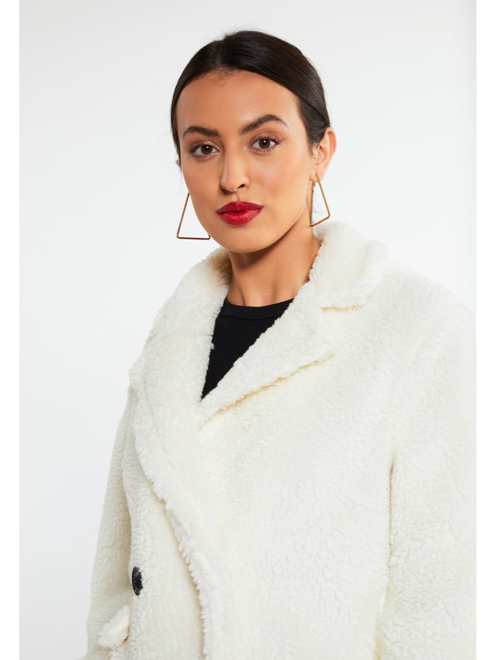 Faina представляет этот пиджак в классическом двубортном стиле из мягкой искусственной овчины. Этот классический пиджак, разработанный в Италии, отличается отложным воротником и тремя карманами с клапанами. Благодаря своей форме и цвету этот длинный пиджак идеально подходит для ношения поверх вечернего наряда.