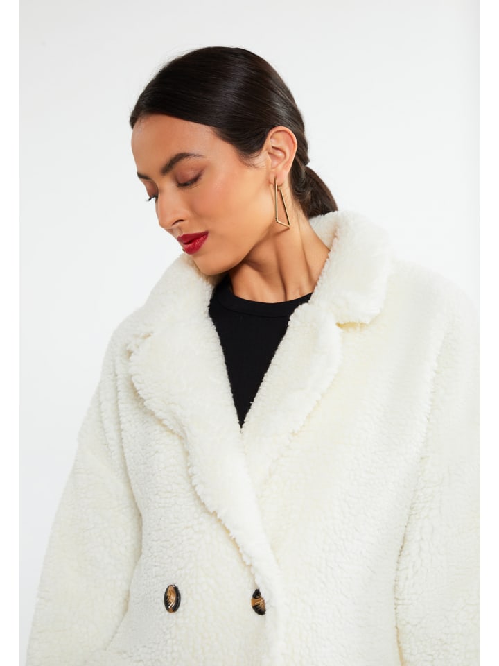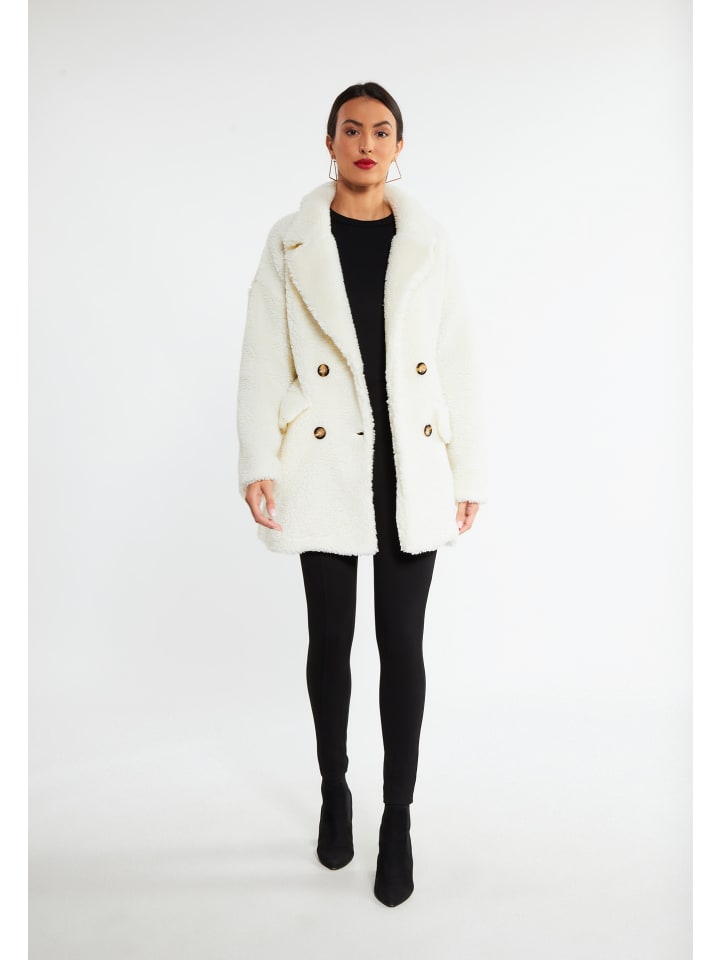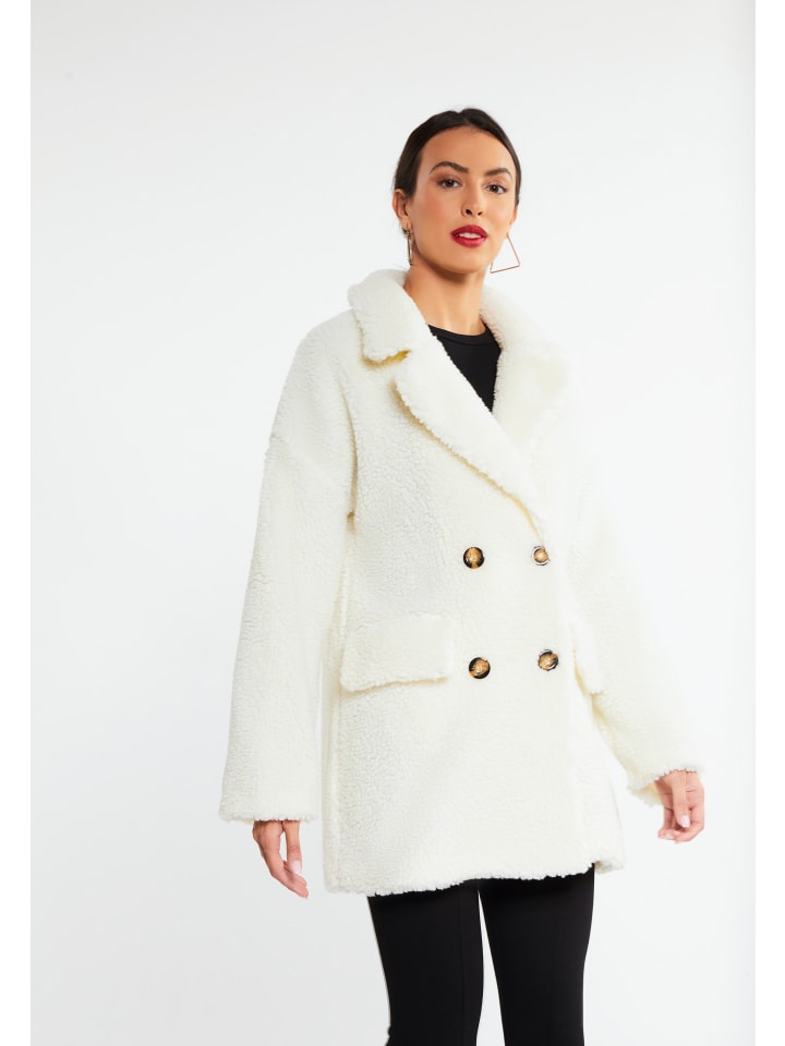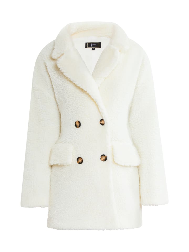 Faina представляет этот пиджак в классическом двубортном стиле из искусственной овчины. Разработанный в Италии, этот классический предмет одежды отличается коротким воротником с лацканами и двумя карманами с клапанами. Благодаря своей форме и цвету, это короткое пальто идеально подходит для вечернего образа.
