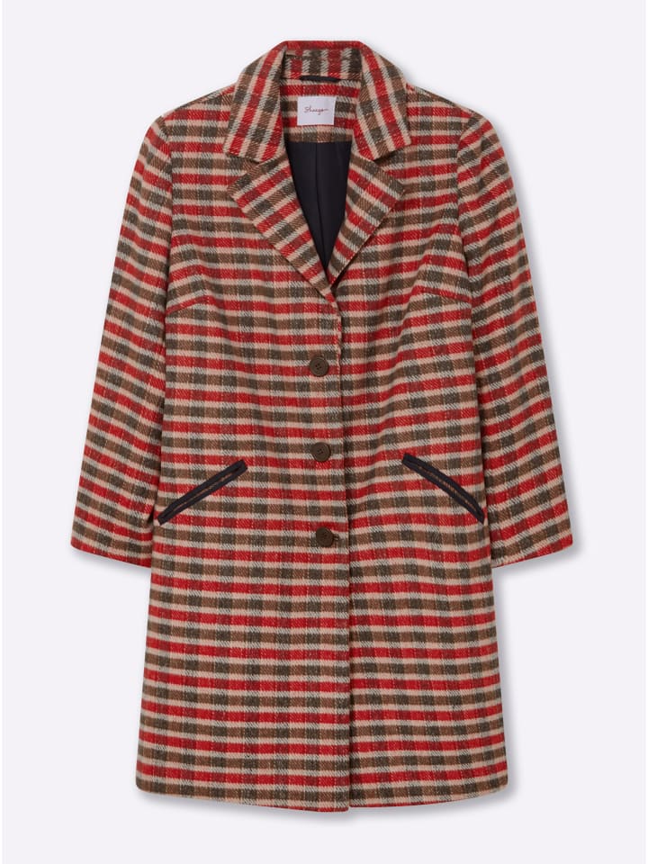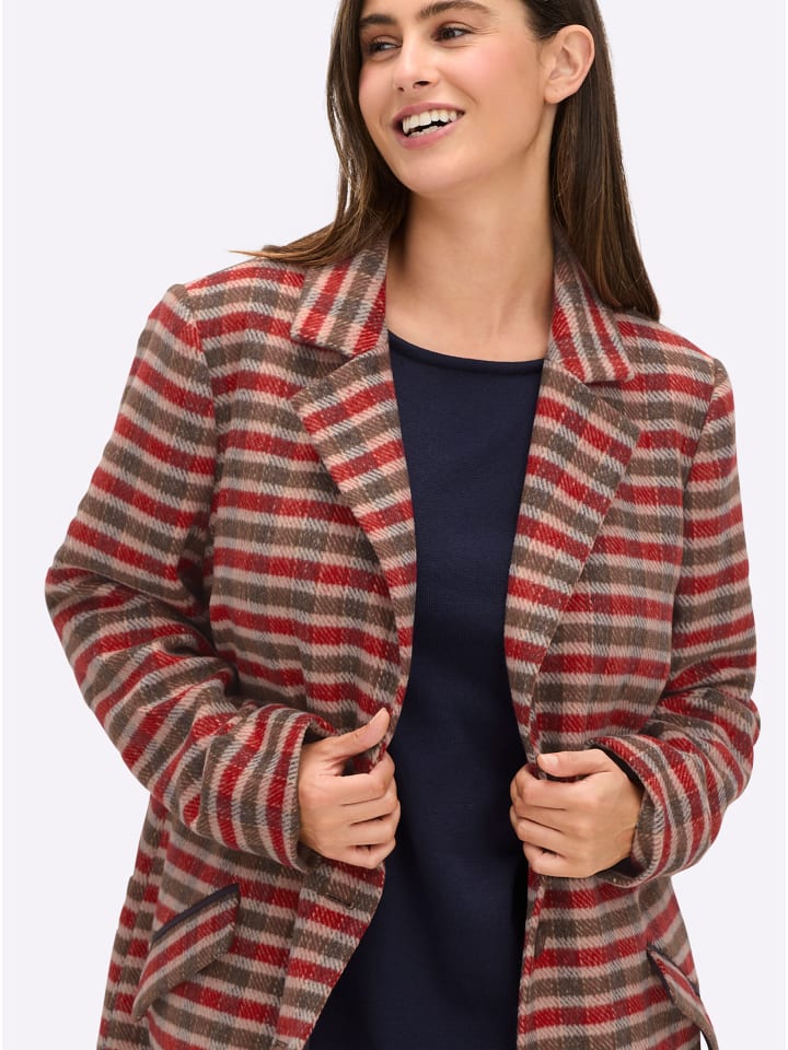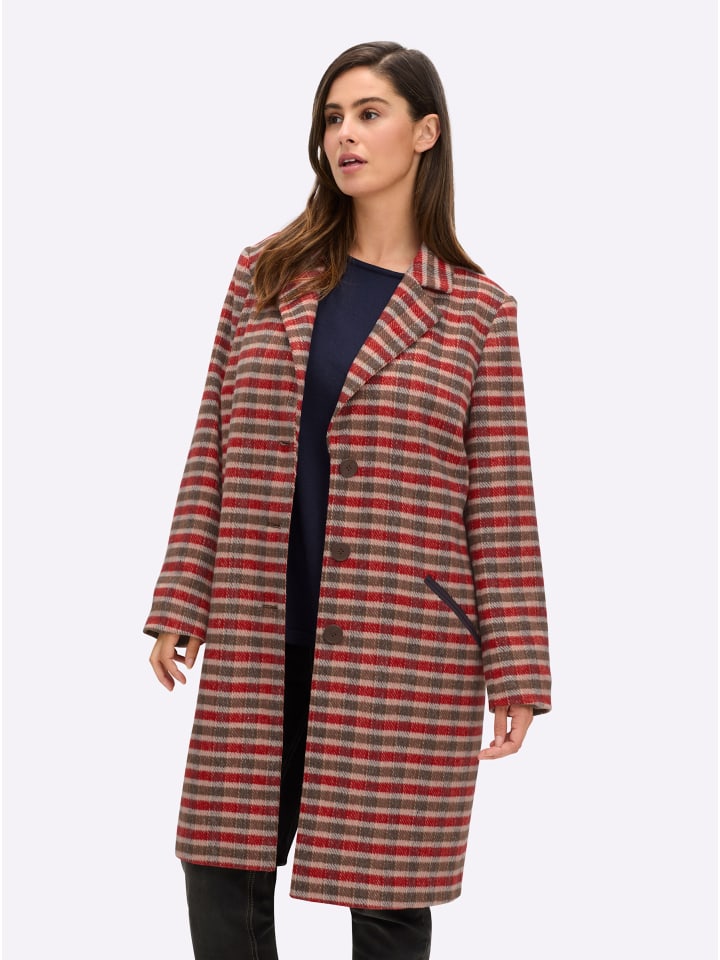 Зимнее пальто с песочно-вишневым узором sheego 22 443₽